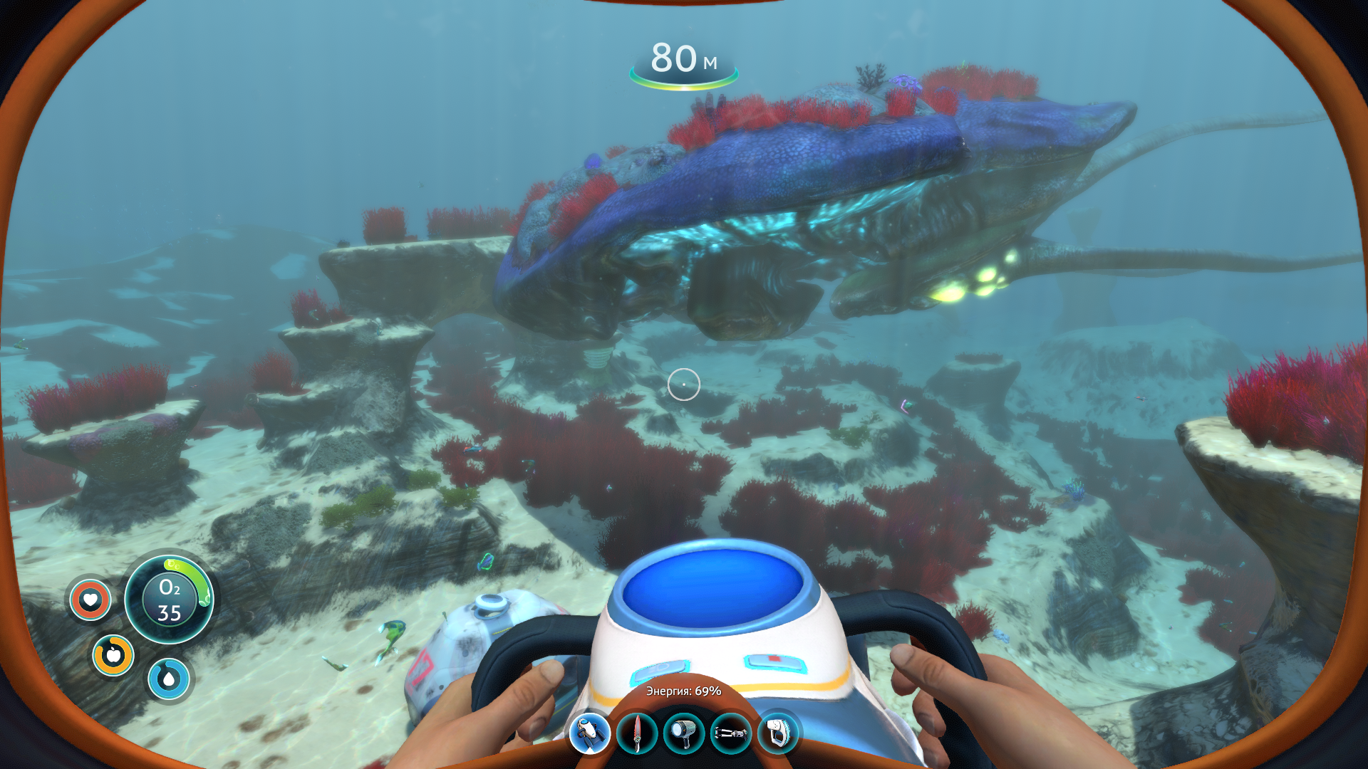Играю я такой в Сабнавтику, ванильную версию, и натыкаюсь на Баг? Фичу? Пасхалку? в общем странного Рифоспина. Который плавает аномально низко по сравнению с обычными Рифоспинами, прям чуть не елозит по дну)) Когда натыкается на препятствие, подёргивается, и разворачивается, я никогда такого не видел, на моей памяти они все на одной высоте плавают. Наблюдал за "Не таким как все" довольно долго, он со временим начал набирать нормальную высоту. Как думаете, что за странное поведение? Видели что-то подобное?