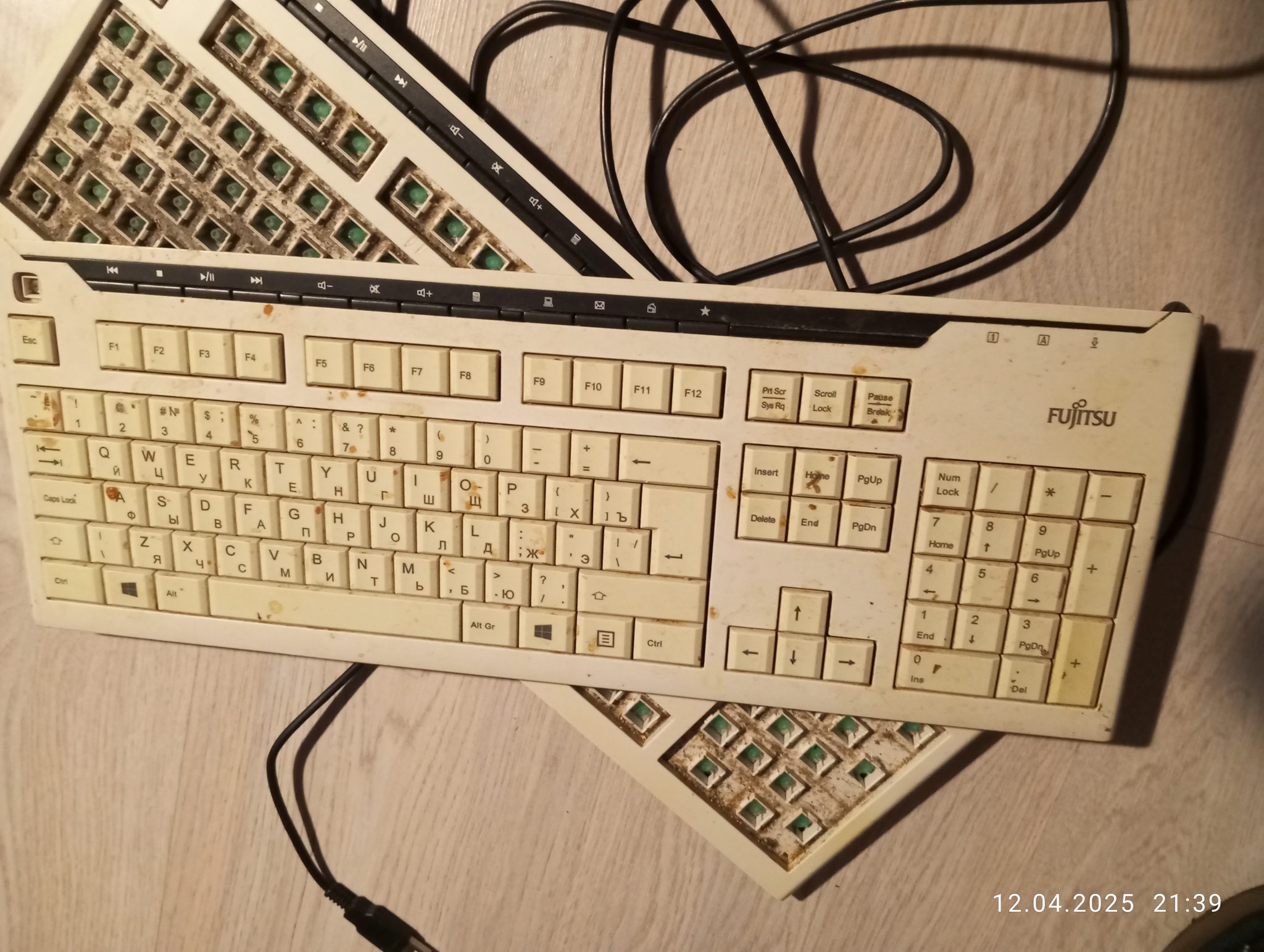 Отмыл. Было такое впечатление, что она побывала в кофеварке. Самое интересное, что есть отверстия для ухода жидкости, если вы прольёте на клаву что-то. По ходу, так и вышло у кого-то. Но, их не убило жидкостью. Вторую, кстати, ещё не проверял.
