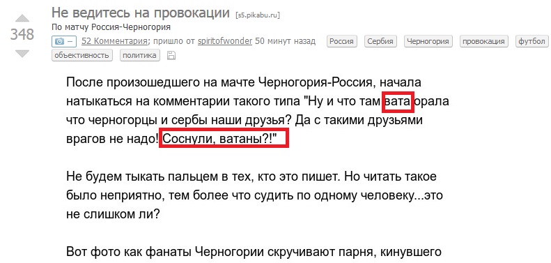 Радует когда когда человек пишет, о том чего не знает. Отношения простых Черногорцев к Россиянам и Россиян к Черногорцам здесь не при чём. Здесь чисто фанатские дела. "Ватаны" здесь, действительго не при делах. Кто-то опять хочет выехать на политике. Кстати... @moderator где тэг "Политика"?