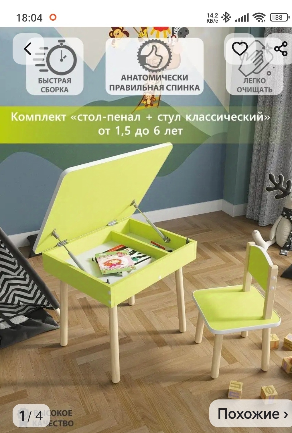 Редко пишу, в основном читатель))). Но ситуация прям удивила. Есть у меня внучара мелкий, ему 3 года. И чего -то подвыбесил меня его стол со стульчиком детский. Шаткий такой стал. Дед и подклеивал и подкручивал, но шатался всё равно. Заказала на ВБ новый, как раз и скидка была. Посмотрела, очень удобный, столешница поднимается и туда можно убрать фломастеры, краски, пластилин и т.д.