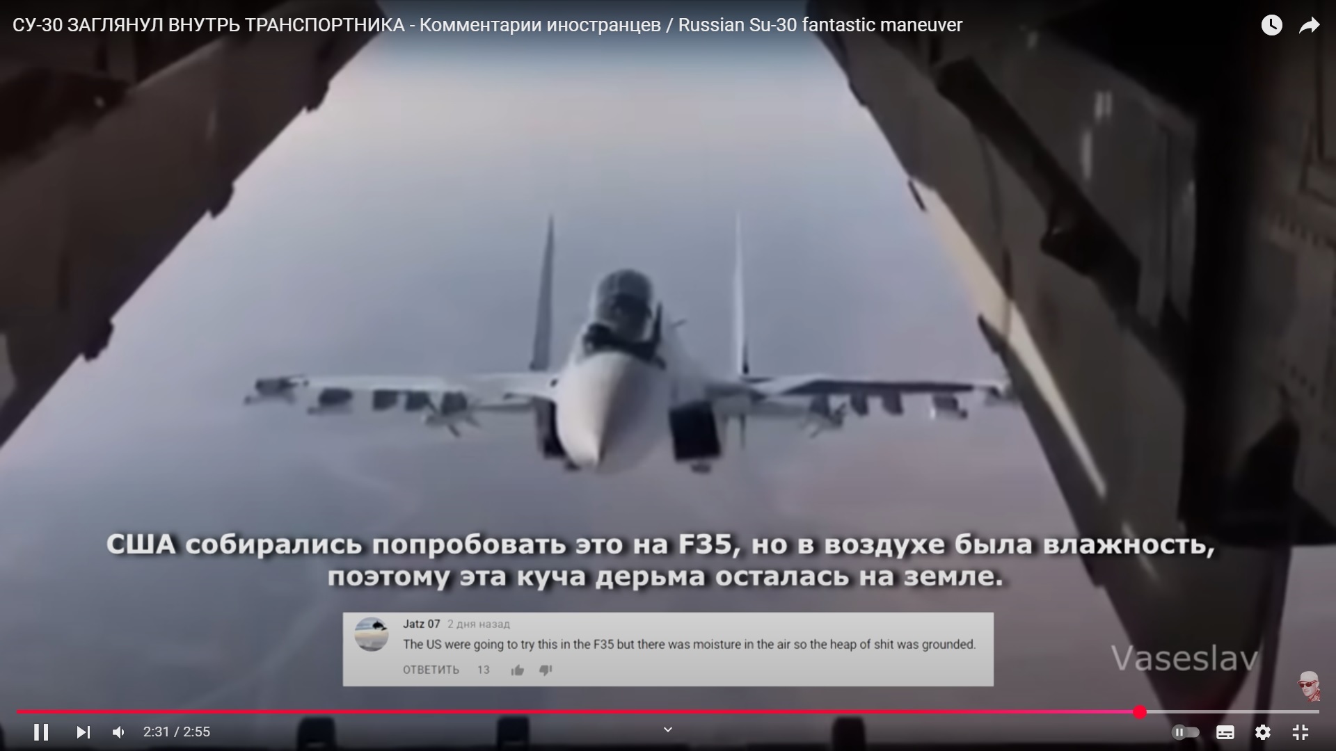 30 dimonnrg Орда маминой подруги Политика Не видел, нарвался на ютубе,понравилась реакция иностранцев 11 месяцев назад Баян скорее всего. Политика Су-30 F-35 Видео YouTube Повтор 1 Ещё 0