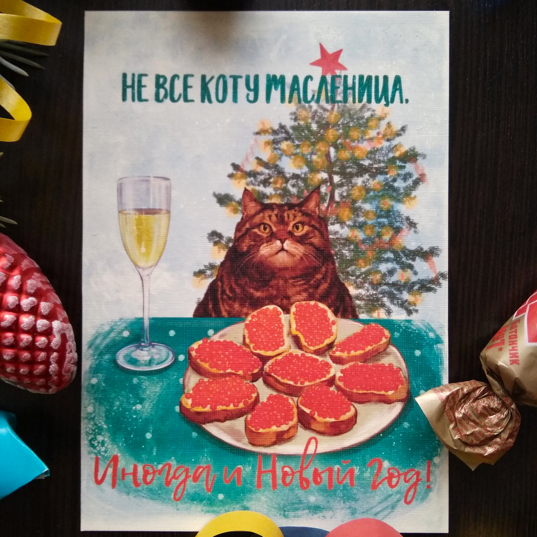 ПЫСЫ: Автор фотографии, если видишь это, напиши пожалуйста, с удовольствием отправлю тебе открытку с твоим шикарным котеем. Всем отличного новогоднего настроения!)