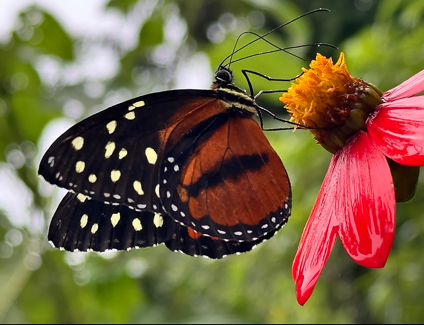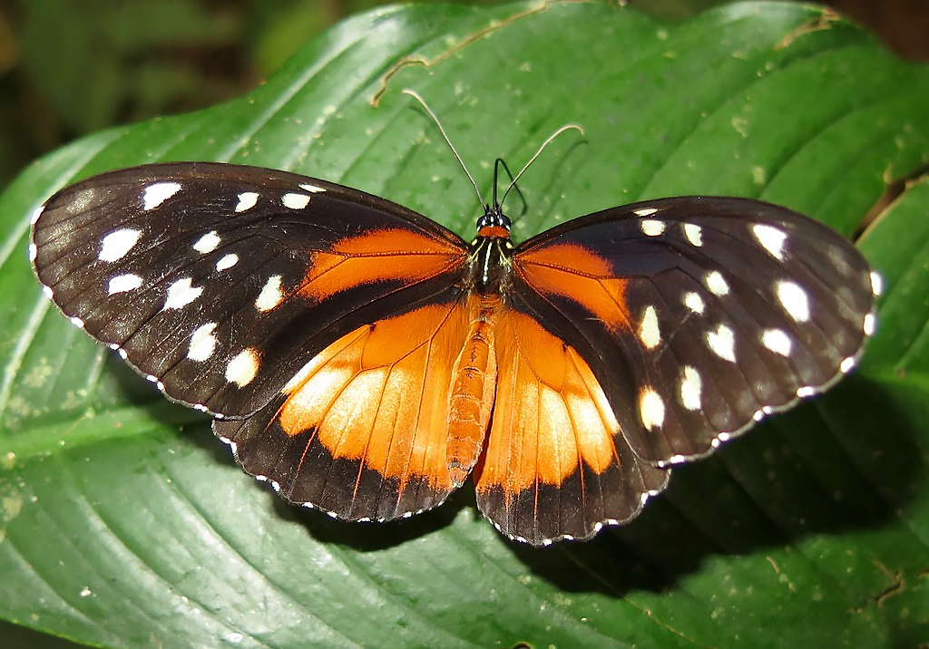 Называется эта бабочка Tithorea tarricina, или длиннокрылая таррицина, и встретиться с ней можно в Центральной и Южной Америке – как на опушках лесов в низинах, так и на горных склонах на высоте до 1500 метров над уровнем моря. Взрослые особи этого вида золотой расцветкой похвастаться не могут, зато могут впечатлить размахом крыльев в 8 сантиметров, а также своей сердитой токсичностью.