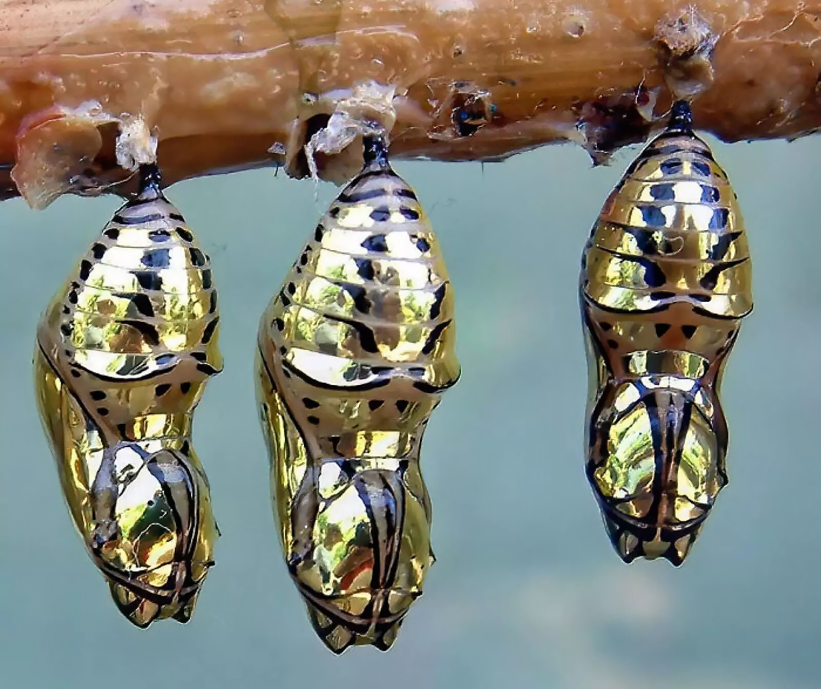 Вы только посмотрите на это немыслимое чудо! Это не работа искусного ювелира, это даже не позолоченные ракушки – это живые и абсолютно настоящие куколки бабочки.