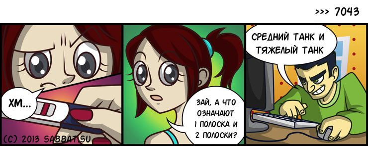 4 Denorst Ша.баш: Цитатник игр и игроков Юмор Не задумываясь Серия Стрипы по цитатам Ша.баш 9 часов назад По мотивам: она: зай, а что означает 1 полоска и 2 полоски?я: *не задумываясь* - средний танк и тяжелый танк from sabbat.su [моё] Комиксы Юмор World of Tanks 1 Ещё 0