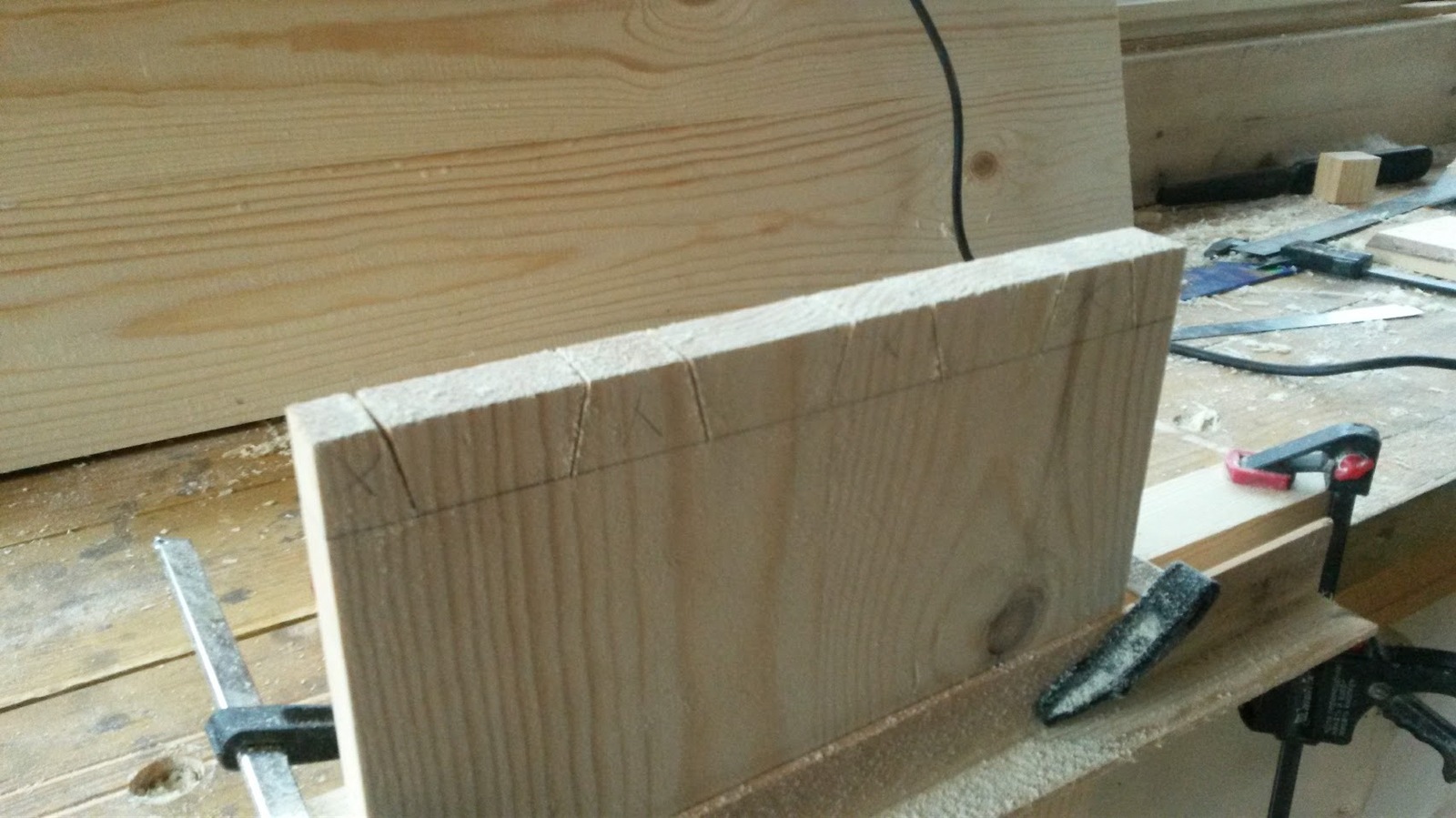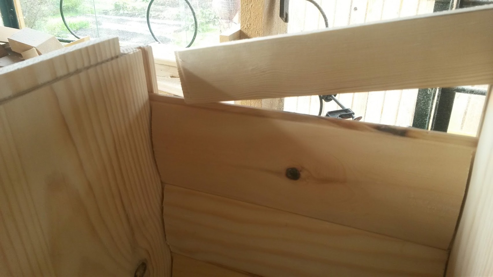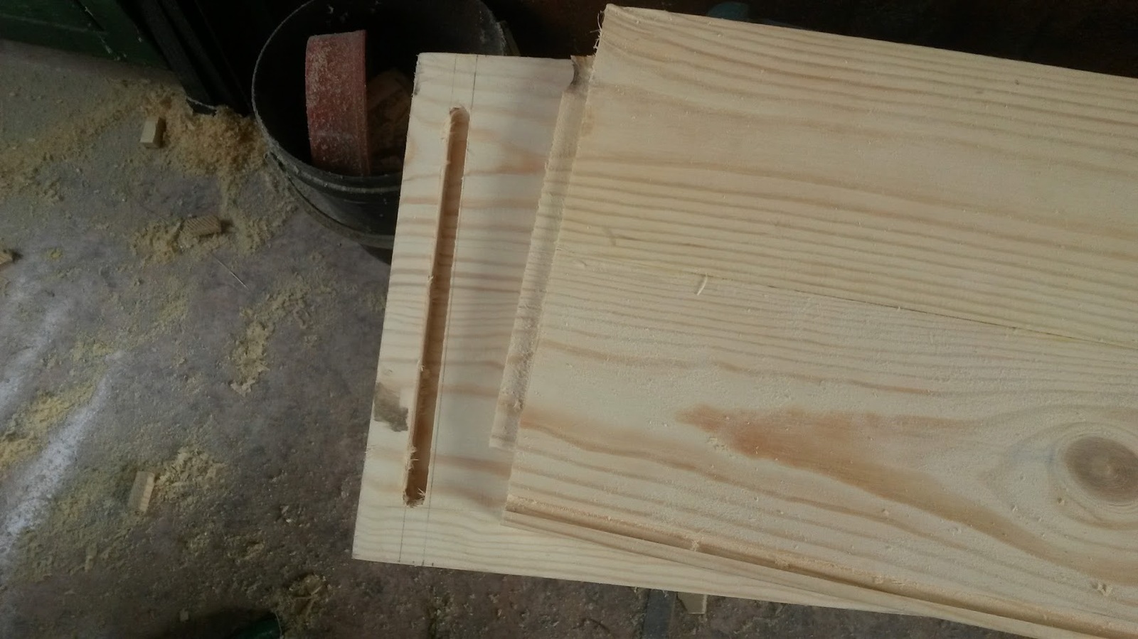 Во всех стенках опять же фрезером подготовлены канавки в которые вставляю филенку - заднюю стенку. Стенки разные, в вертикальном отсеке из обрезков деревянной вагонки. (предварительно выбраны четверти с обоих торцов)