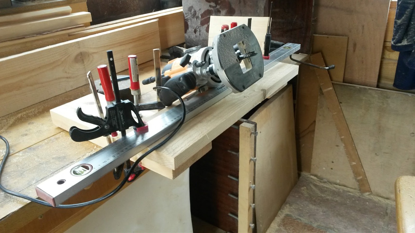 Так как грани у всех досок были волной начинаю это все дело исправлять. Сначала фрезером вывожу одну плоскость.