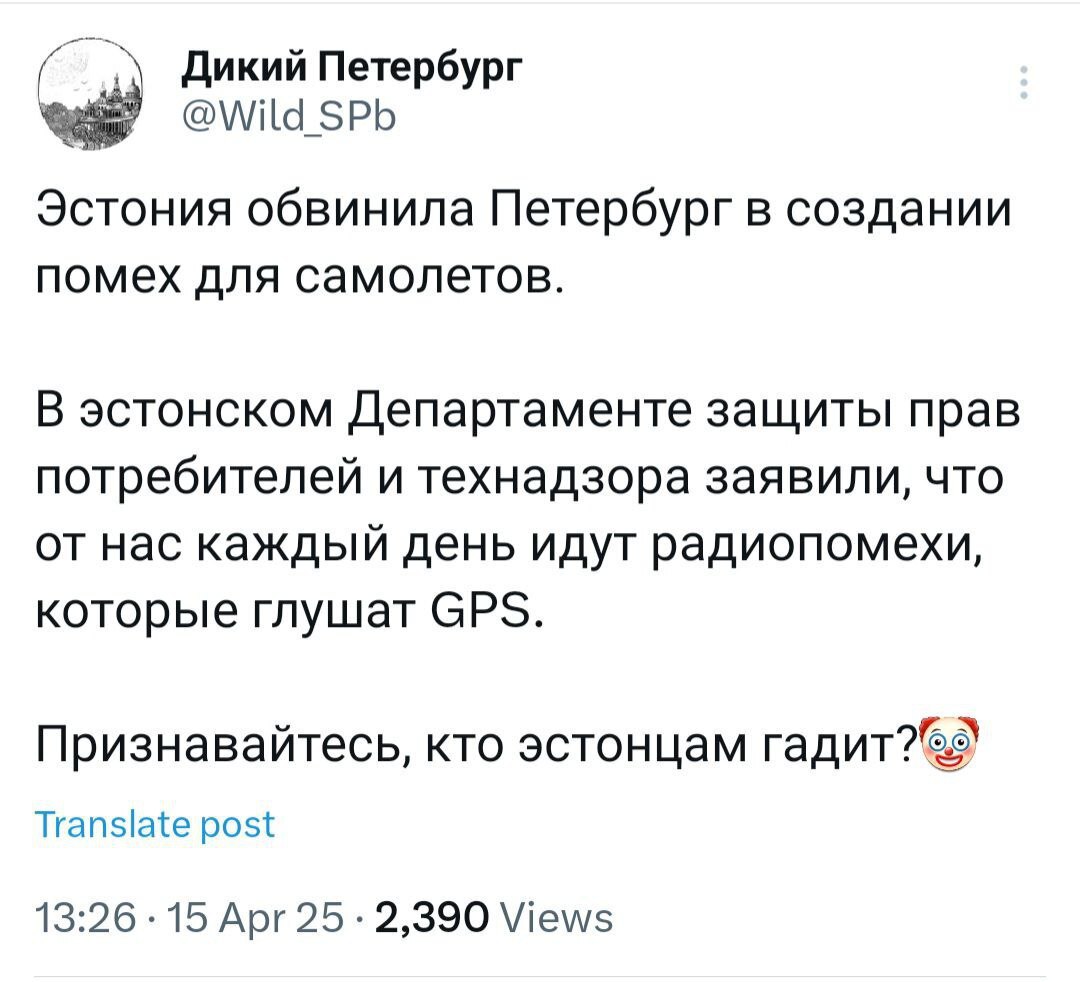 574 BorschRusso Политика Не знал, что в Эстонии технологии и GPS есть1 9 месяцев назад Источник X (Twitter) Скриншот Политика Россия Эстония Прибалтика Санкт-Петербург GPS Авиация Гражданская авиация Юмор Ирония Сарказм 37 4 Ещё 0