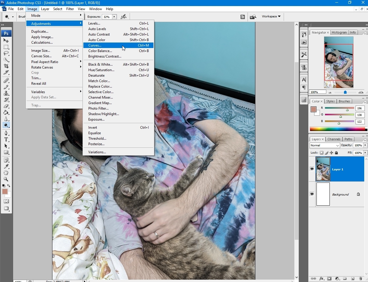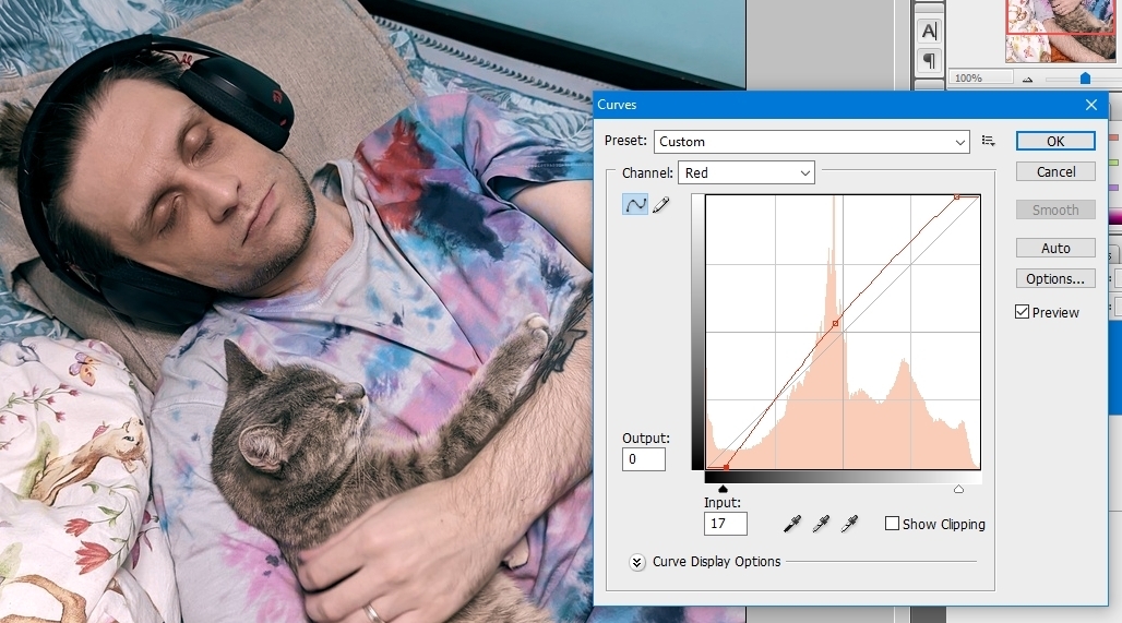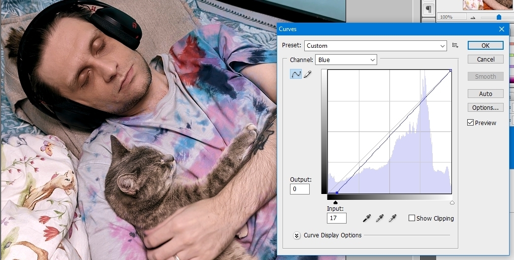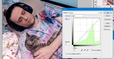 Открыть фото в программе. Вызываем инструмент "Кривые". В красном канале задаём среднюю точку и немного её задираем, в зелёном и синем двигаем вправо нижн.точку, -- зел. двигаем поменьше, син. чуть побольше. Редактируем последовательно кривую в трёх каналах по отдельности, жмём ОК. Сохранить.