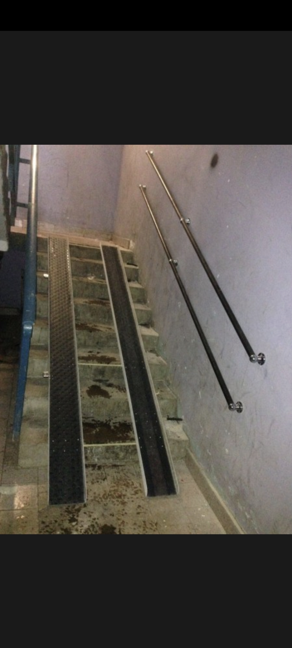 В начале августа он выломал(высверлил заклепки) в старом пандусе, и неделю он был в неисправном состоянии. Затем управляющая компания 13-го августа установила новый
