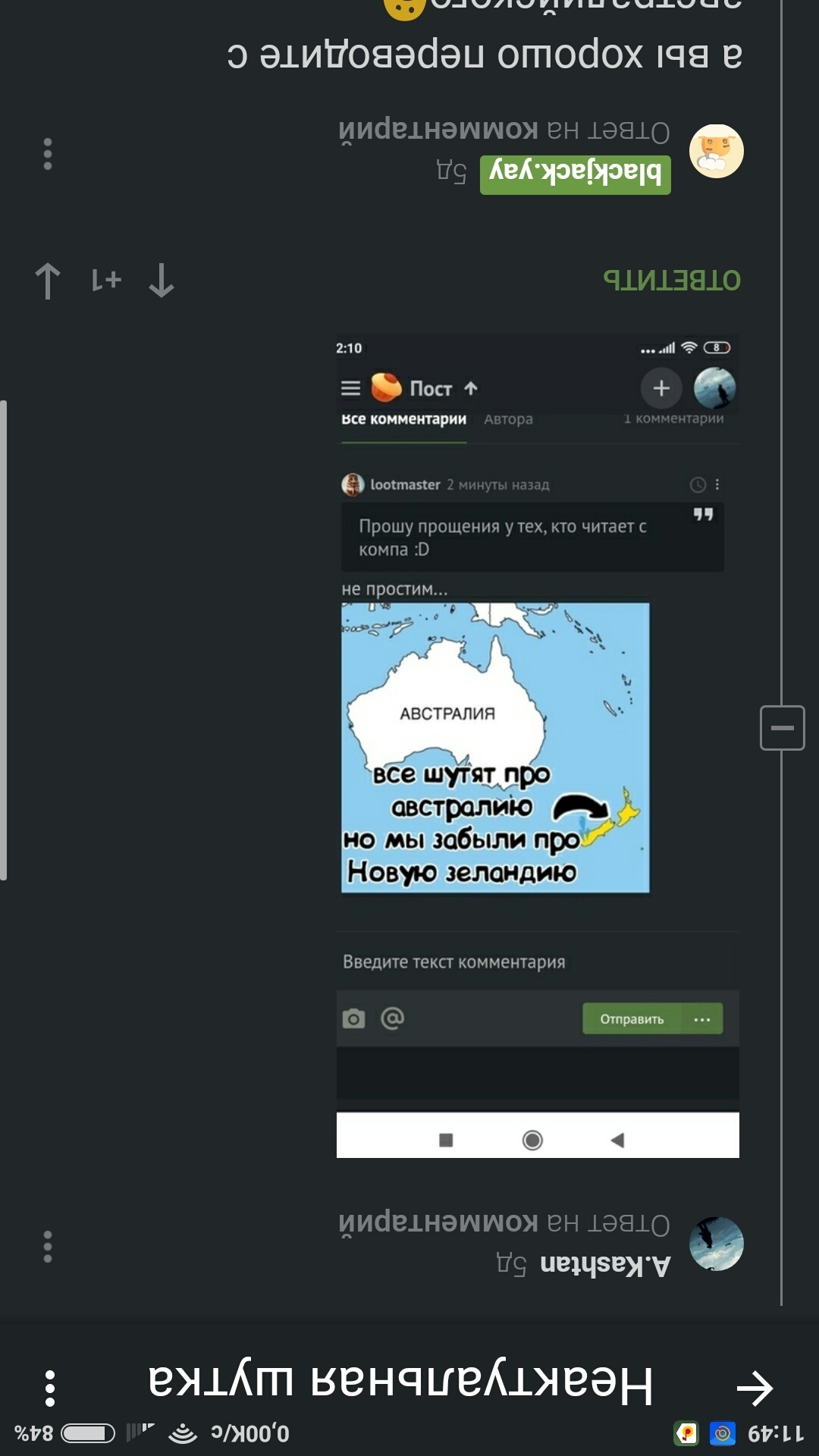 blackjack.yay Лига путешественников Неактуальная шутка 5 лет назад Прошу прощения у тех, кто читает с компа :D [моё] Новая Зеландия Австралия Мемы Юмор Мир перевернулся Перевернутый мир Ещё 0