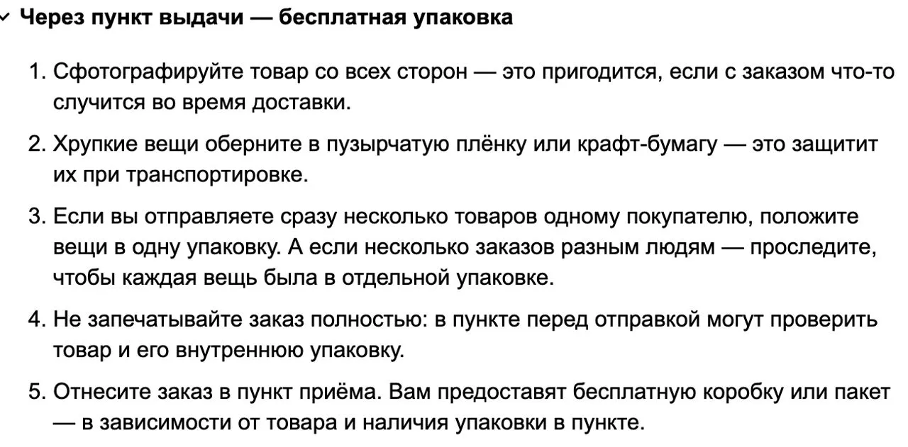 Интересно, какие правила я нарушил по упаковке? Ищем памятку на сайте авито, что они сами пишут об упаковке и видим следующий текст:
