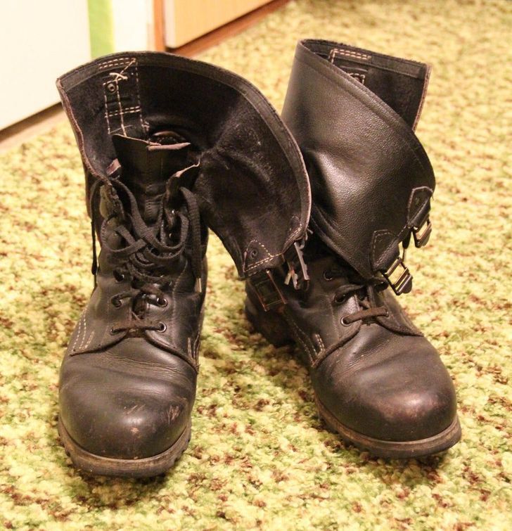 5. Военные ботинки 1968 года. Они до сих пор водонепроницаемые, я могу спокойно перейти в них ручей. И кстати, я надевал их даже на первое свидание со своей женой.