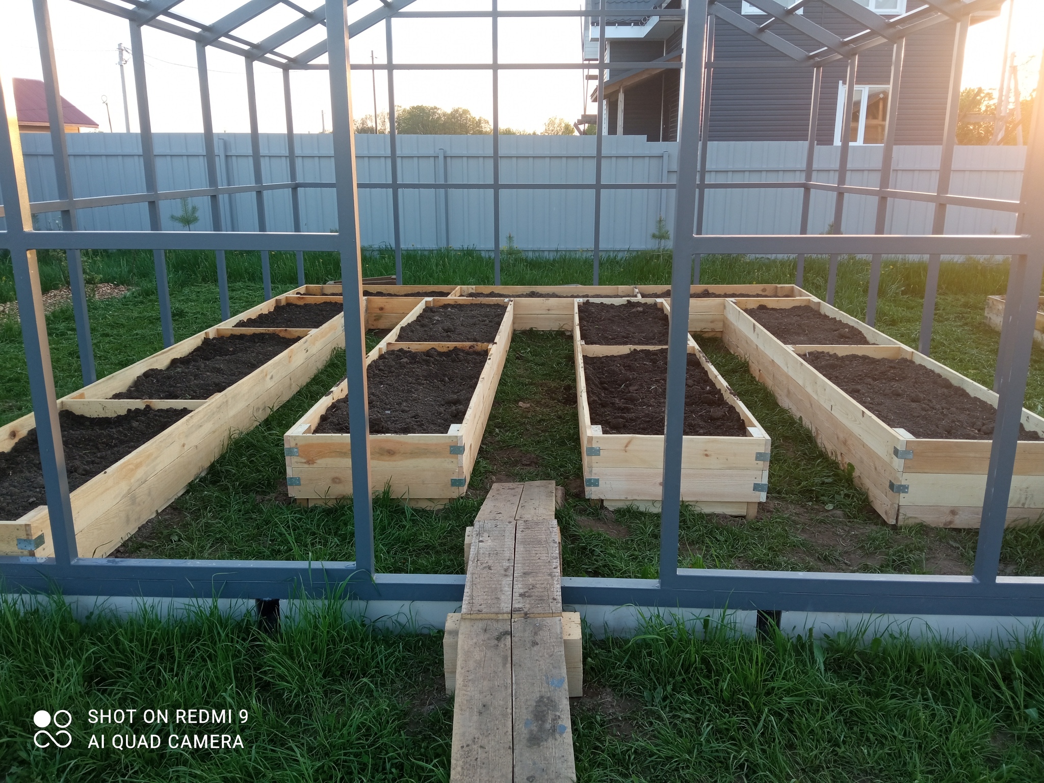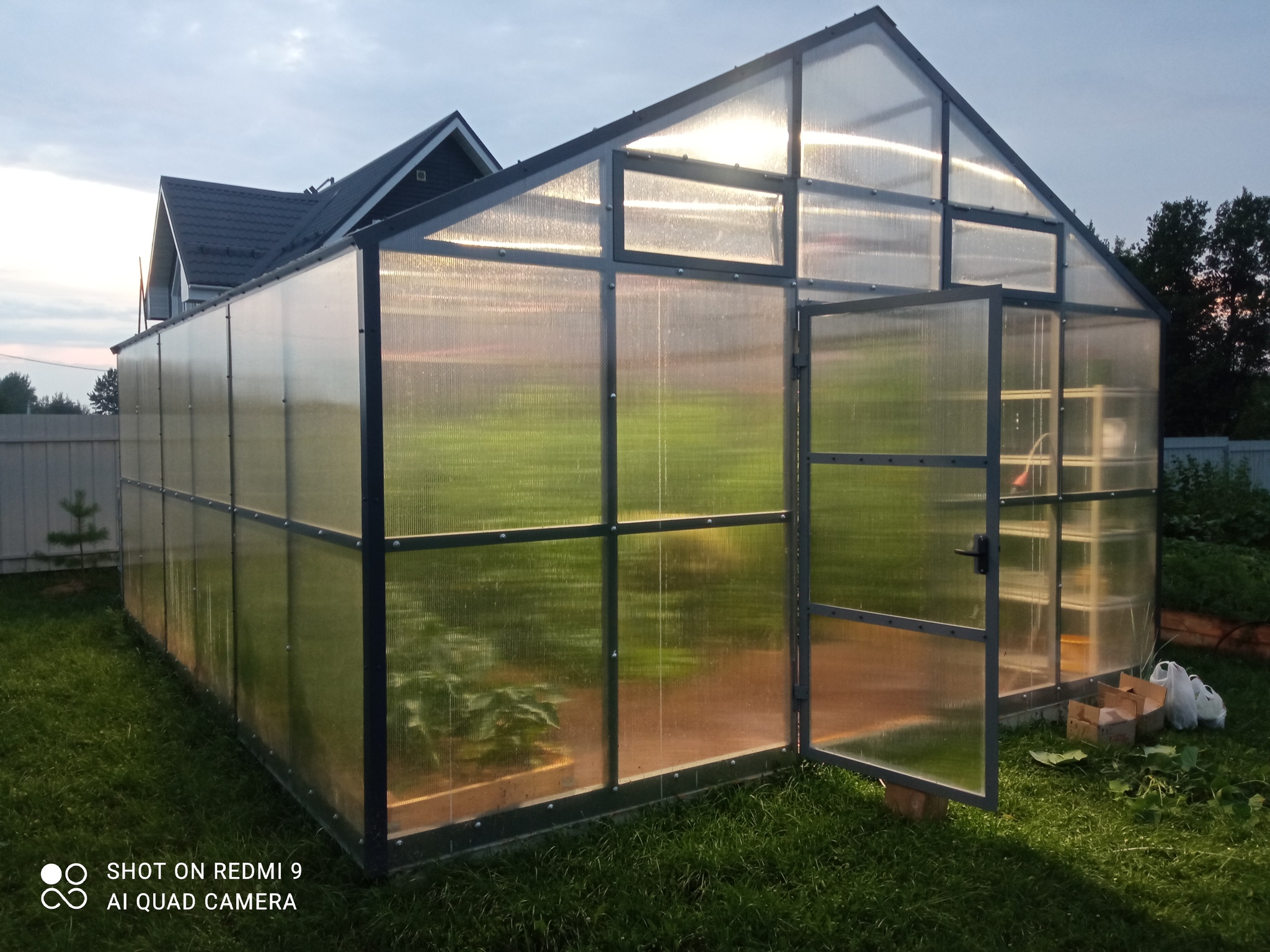 Сейчас уже смонтировано освещение для работы по вечерам. В следующем году будет заведена вода с еврокуба через гидростанцию, для полива. Что бы каждый раз не таскать шланг.