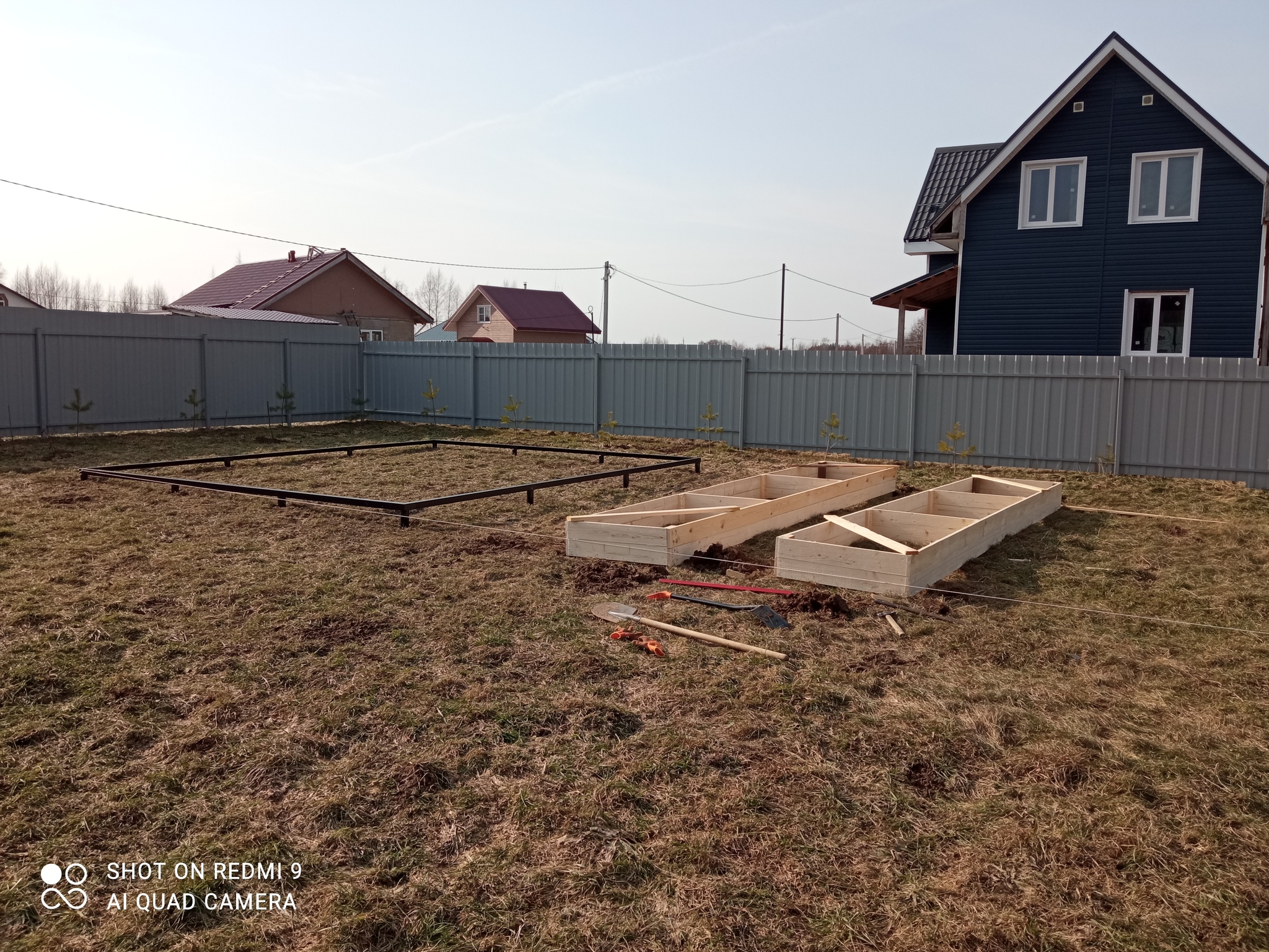И так фундамент. 12 винтовых свай. И обвязка 63 уголком по периметру. Работы были проведены осенью, перед уходом в зиму.