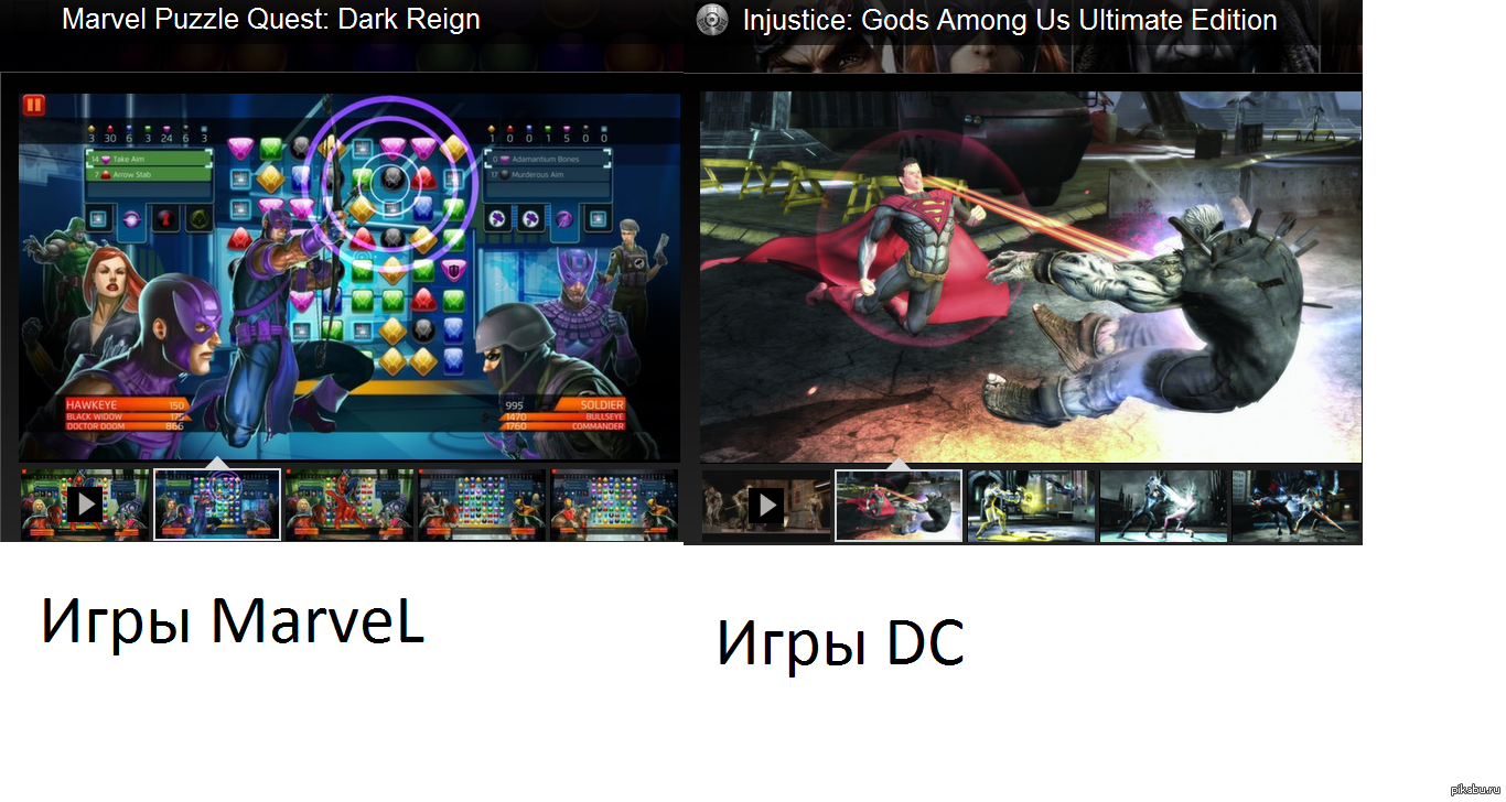 1 1SaurOn1 Небольшое сравнение DC и Marvel 11 лет назад Извиняюсь, за то что криво склеил [моё] Игры Комиксы
