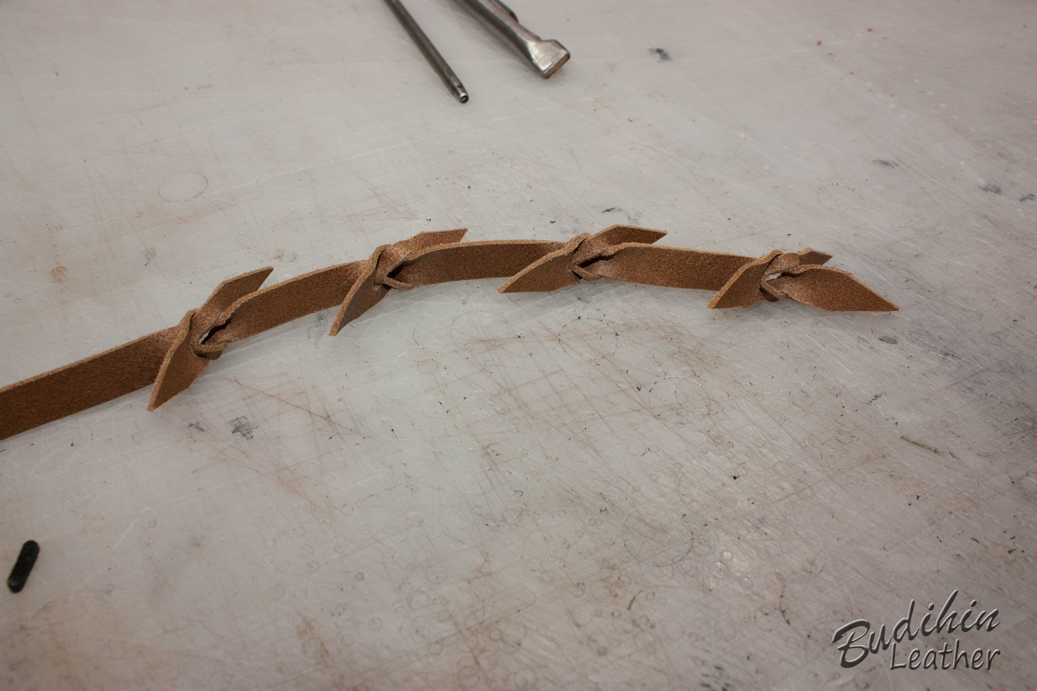 Последнюю, концевую часть я делаю короче и просто обрезаю под углом что бы получить последний лепесток примерно такого же размера, как и все остальные. Хотелось бы заметить что если будет использоваться ременная кожа большой толщины, лучше оставить обычный хвост на окончании. Больно уж грубым он получается, да и в процессе использования его может развернуть, получить острым концом, достаточно плотной кожи, не всегда гуд.