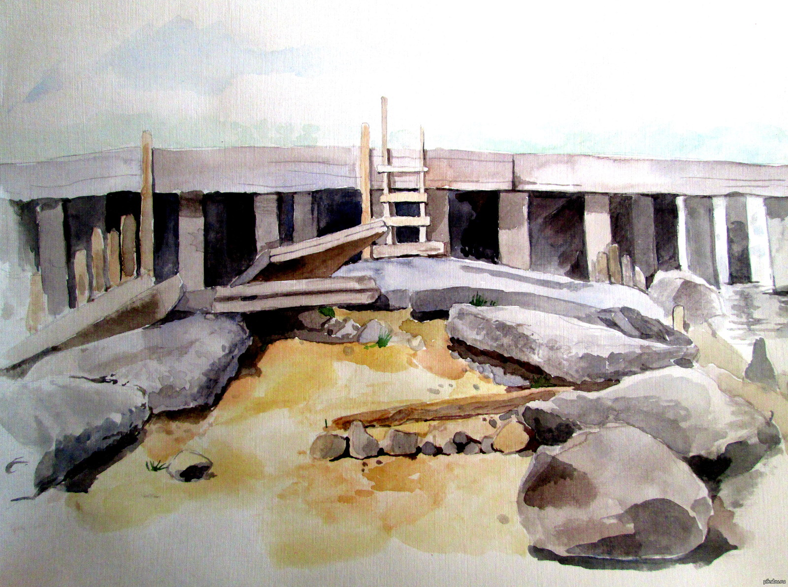 116 Maiarel Небольшой набросок разрушеного причала 11 лет назад сделанный на свежем воздухе [моё] Рисунок Акварель Развалины Набросок
