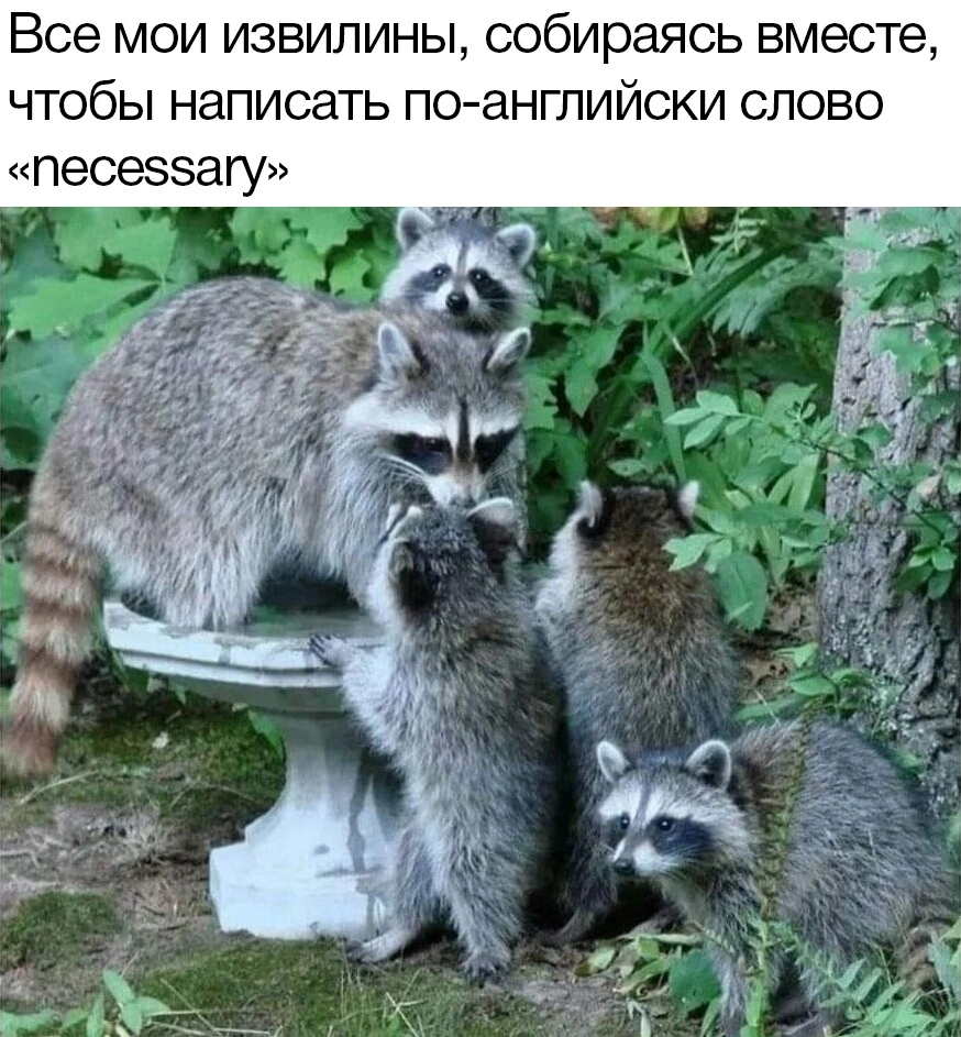 20 VerhovniyMemolog 2 года назад Юмор для всех и каждого Necessary Телеграм - Три мема внутривенно Юмор Картинка с текстом Мемы Английский язык Енот Извилины 1 Ещё 0