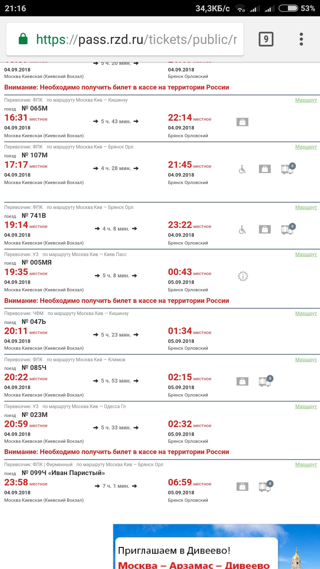 Нашел у себя в телефоне скриншот страницы РЖД. 2018 год. Было время, когда поезда отправлялись с Киевского вокзала на Украину. Киев, Одесса... Даже можно было уехать в Кишинев, который в Молдавии. Сейчас такое представить невозможно. Сам я ездил частенько по машруту Москва-Брянск в тот период жизни. Старался выбирать наши поезда, тк подвижной состав что у украинцев, что у молдаван, оставлял желать лучшего. Грязные, окна черные, немытые. Однажды пришлось проехаться на молдавском. В вагоне были в основном украинцы, которые приехали на заработки в Москву. Незабываемая поездка была)))