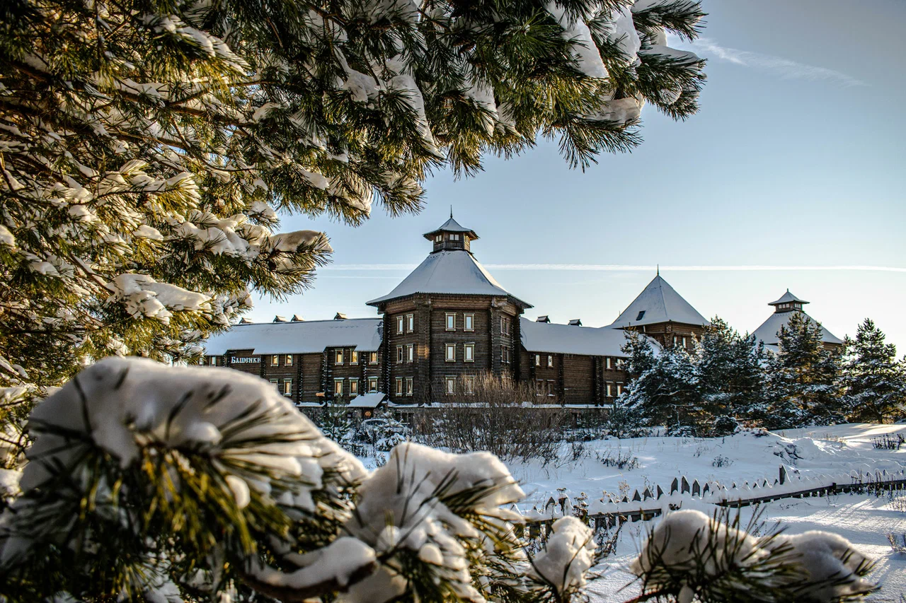 «Русские сезоны Вятские дачи», от 25 000 рублей — отдых на лоне природы с городским комфортом. Уютные номера с потрясающим зимним пейзажем из окон, детская площадка, собственный ресторан и множество зимних активностей.