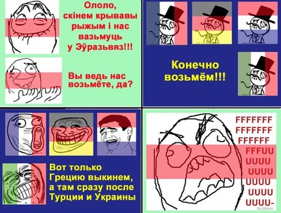 Можно я внесу свою точку зрения? Спасибо. Знаете, я думаю, что белорусов троллили не спецслужбы, а обычные россияне. Почему бы и нет, собственно? Вон, украинцы уже показали свою сущность. Скоро очередные выборы в Беларуси. Усатый Бацька змагаров приструнил, но держит при себе. Случись что, он с радостью вместе со всеми белорусами побежит к НАТО семимильными шагами. Так что я не верю во всю эту братскую чушь. В современном мире везде только деловые отношения или право силы. У России только два брата и союзника. И это не Сербия и Беларусь. Лично я уже жду очередной майдан. И я не верю во всю эту показательную чушь про союзников и укрепление отношений. Сегодня вам братья-белорусы в инете пишут про то, какие укры дибилы, а завтра будут скакать и орать "Живэ Беларусь!!!111". Так что браты или не браты мы, по моему мнению, рассуждать об этом бесполезно. Меньше пафоса, господа, больше реализма. И без обид, "братья" сербы и белорусы. Я много примерно такого и выслушал в ваших змагарских группах и не питаю иллюзий на эту тему.