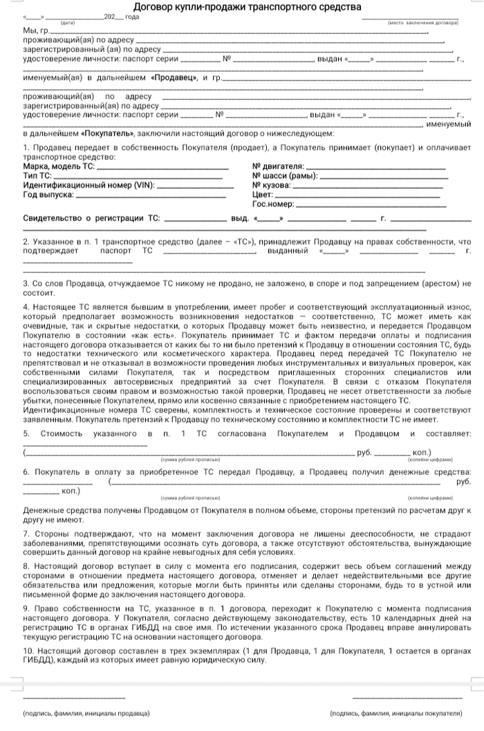 Тут на днях было обсуждение на Пикабу: что должно быть прописано в договоре купли-продажи автомобиля.
