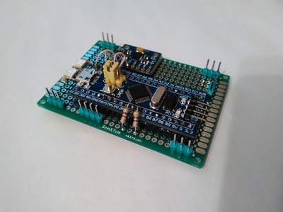 По размерам, STM32 чучуть больше Arduino Nano. На небольшом бредборде смотрится вот так: