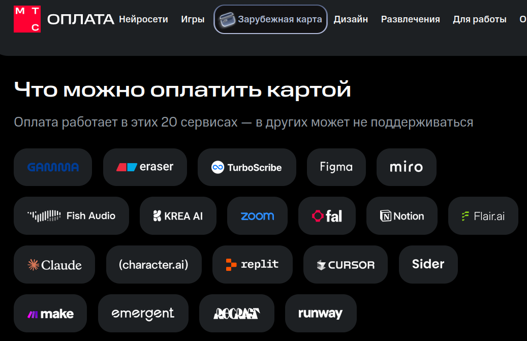 Недавно понадобилось мне оплатить одну подписку на забугорном сайте. Стал я гуглить в поисках возможностей по оплате. Оказалось, что у МТС есть сервис под названием "МТС Оплата", который предлагает купить одноразовую карту.