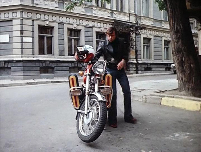 В числе таких картин были «Бриллиантовая рука», «Человек-амфибия», «Укротительница тигров», «А зори здесь тихие», «Сыщик», «Авария – дочь мента». Даже Волк из мультфильма «Ну, погоди!» в одном из эпизодов гонял на модном байке Jawa.