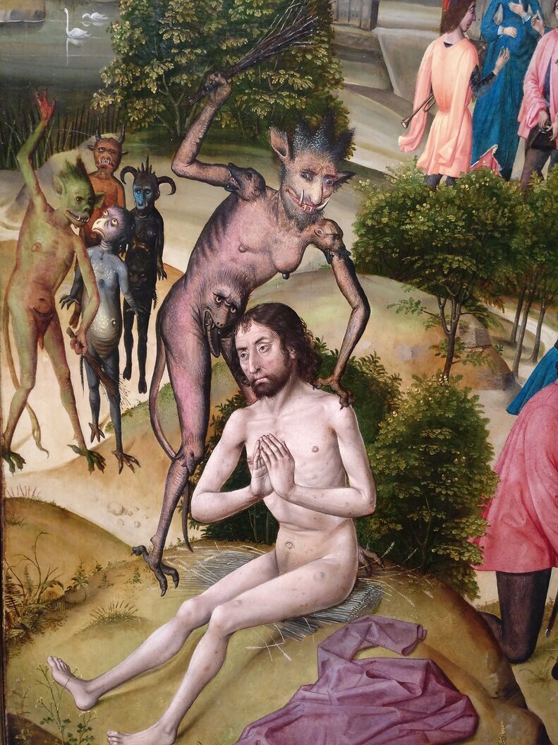 Причём сам Иов их как бы и не замечает — молится богу, поэтому сосредоточен. Ну, и диаволы — коварные, ему они не видны.