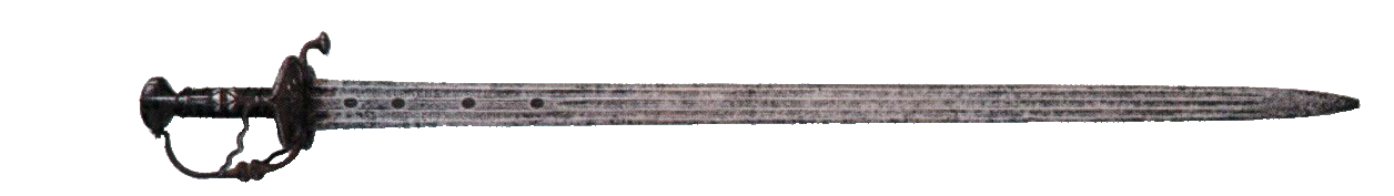 Это превосходный образец оружейного искусства. На его клинке значится фамилия «Клеменс». Это весьма именитая фалимилия немецких мастеров XVII в. В тот период подпись очень часто подделывалась другими изготовителями клинков. Однако данный экземпляр необычайно высокого качества, что несомненно, может свидетельствовать о подлинном произведении Клеменса. Палаш выполнен в минималистическом стиле, где каждая деталь служит только эффективности. Клинок широк, прямой и обоюдоострый, профилирован несколькми долами по всей длине. Черен рукояти выполнен из дерева. А эфес представляет собой гарду из двух щитков, небольшой крестовины, верхний конец которой загнут в напралении клинка и нескольких дащитных дужек. Палаш изготовили примерно в 1690 году. Его полная длина 98 см.