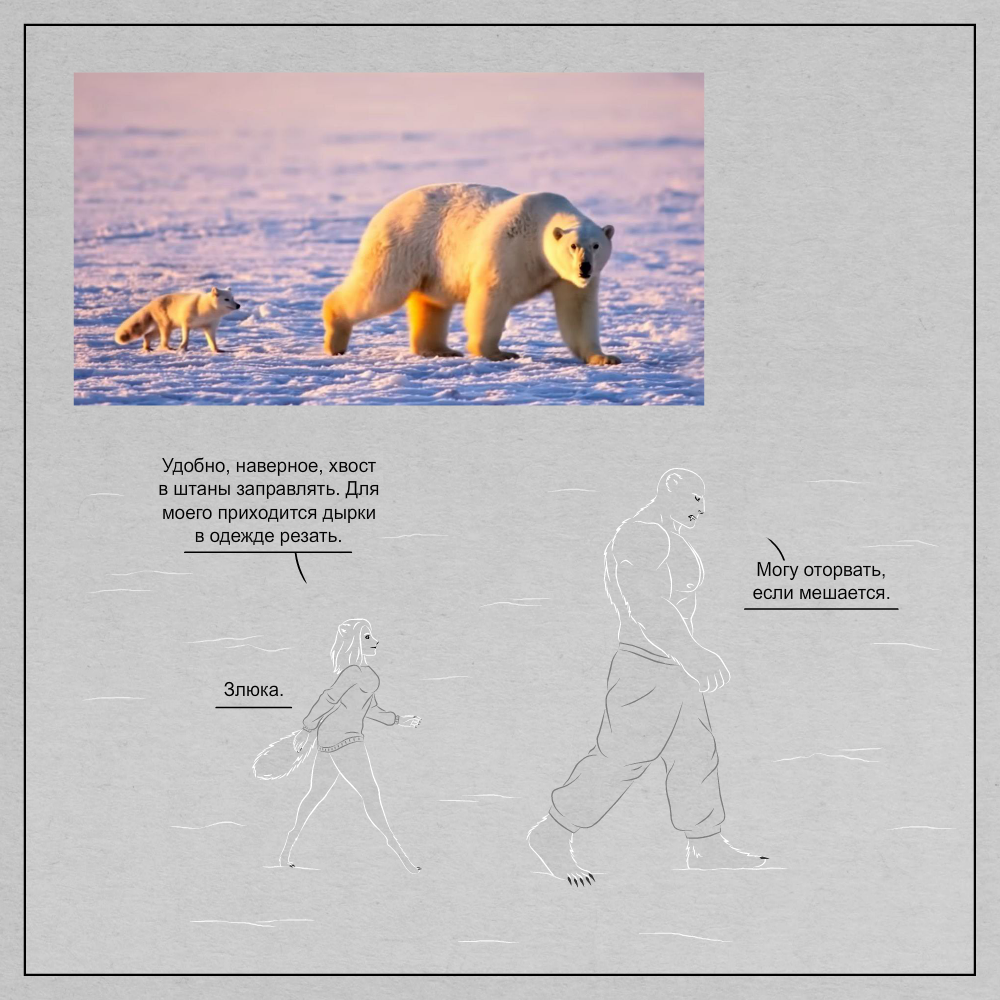Внесюжетная глава небольшого авторского комикса, вдохновленная документалками про песцов и медведей.