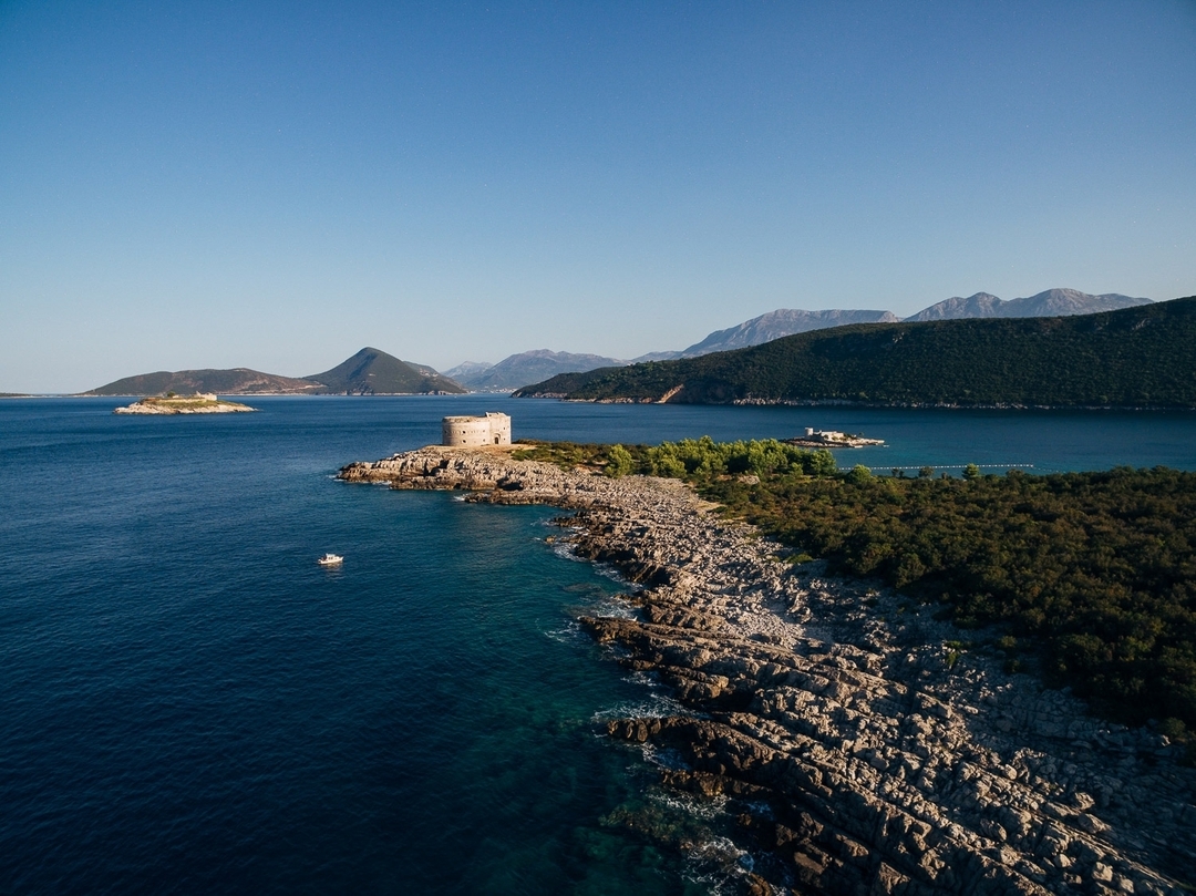 ↑ Форт Арза на фоне острова Мамула. Координаты: 42.391465, 18.570776