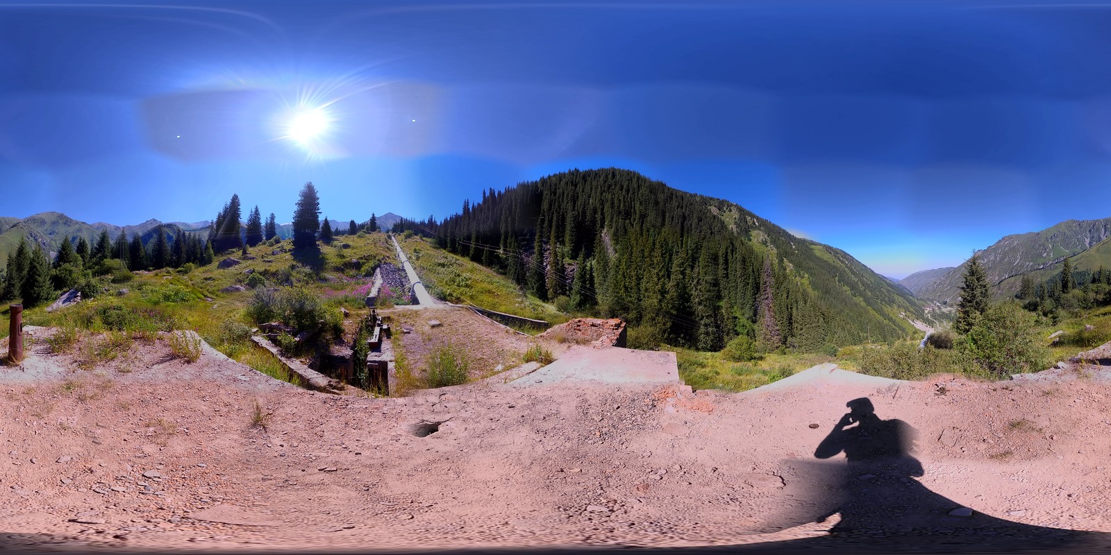 На панорамном фото видно как труба дальше уходит вверх. Тут я что-то стормозил и не стал дальше фотографировать путь по трубе. И вообще сегодня пограничники перекрыли дорогу для машин и туристов. И я пошел в обход. Но не дошел до нужной точки ,чтоб снять озеро, но увидел другие прекрасные виды....