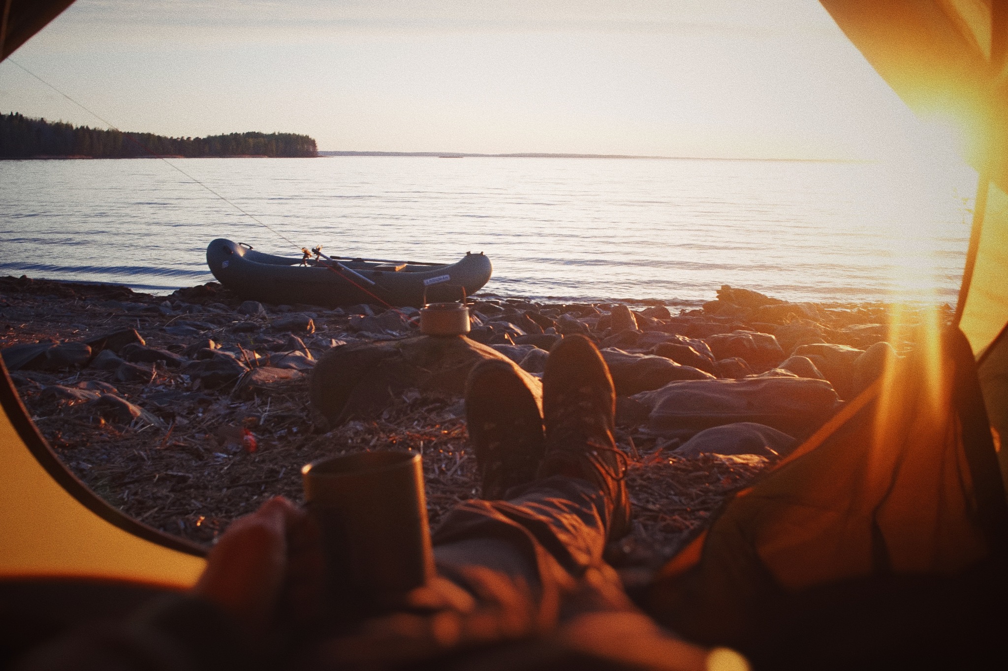 Под тентом хорошо и особенно уютно в дождь. А с костром - как у камина.