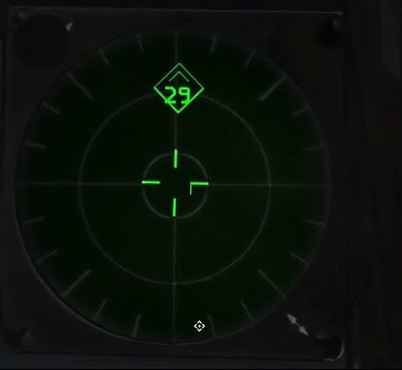 Соответственно засветки похожи на те, что есть в A-A режиме. Также виден курсор, коим мы показываем, куда нашему FCR смотреть. Опять же можно сузить поле зрения и цель будет более отчетливо прорисована, более разборчивой.