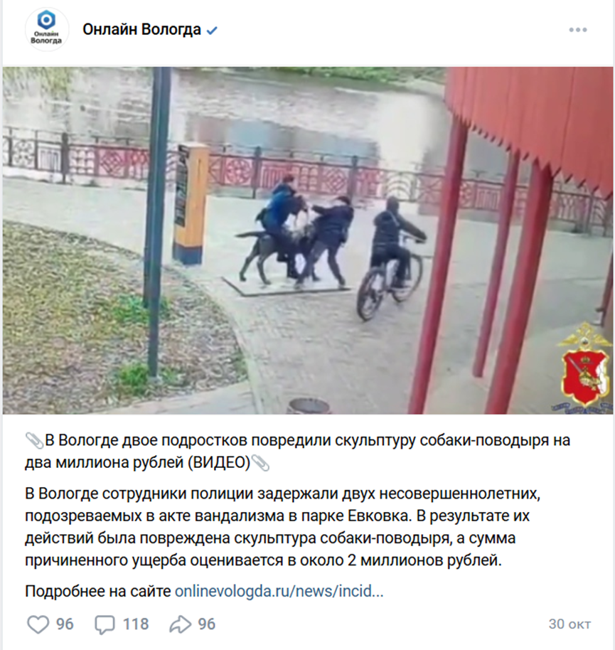 Но памятнки нравятся не всем… тут же, кстати и цена указана (https://onlinevologda.ru/news/incidents/v-vologde-dvoe-podro...)