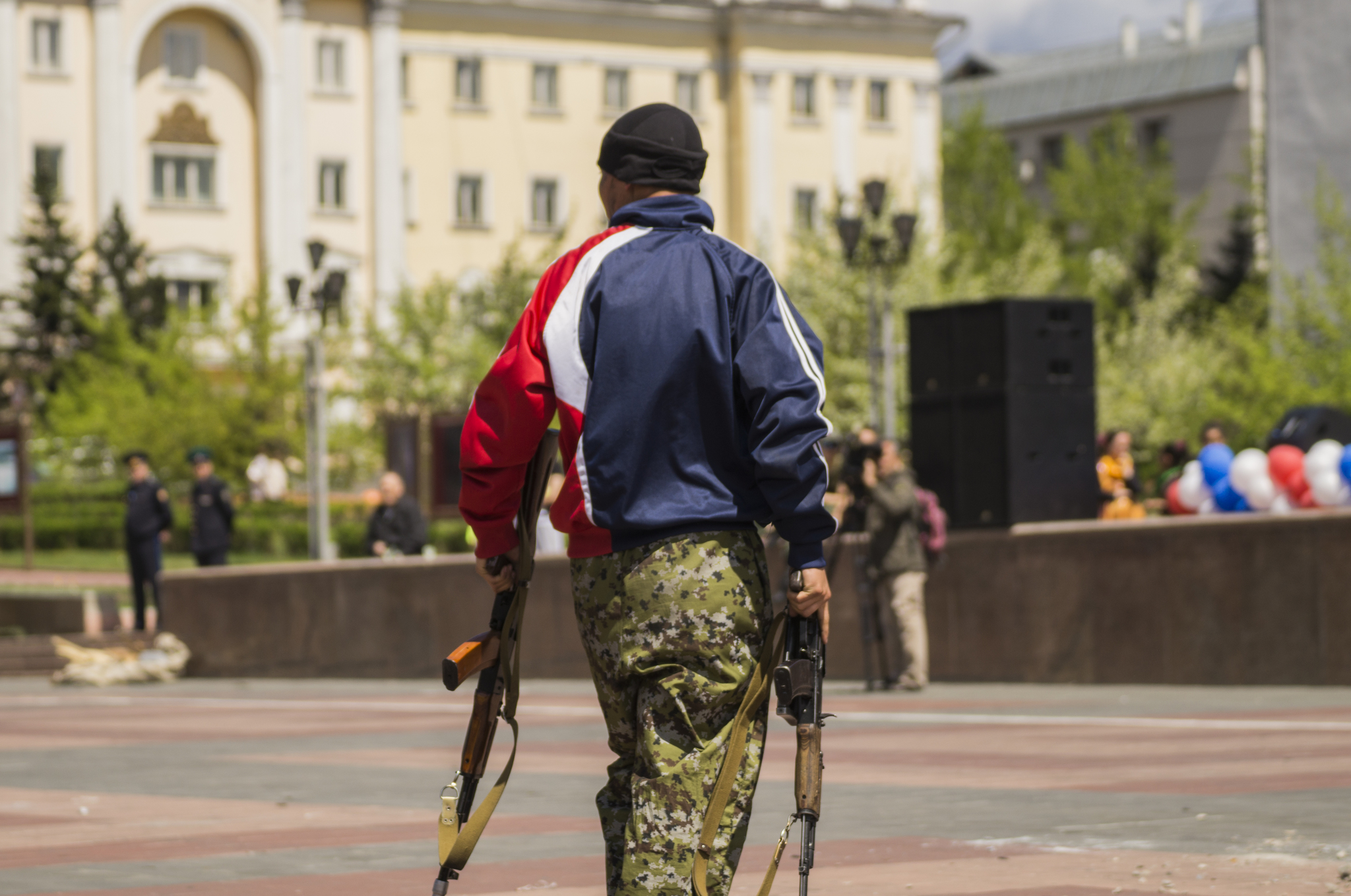 Условный террорист собственной персоной. В связи с особой опасностью данного асоциального гражданина, которую он представляет для фотографа - фото только со спины.