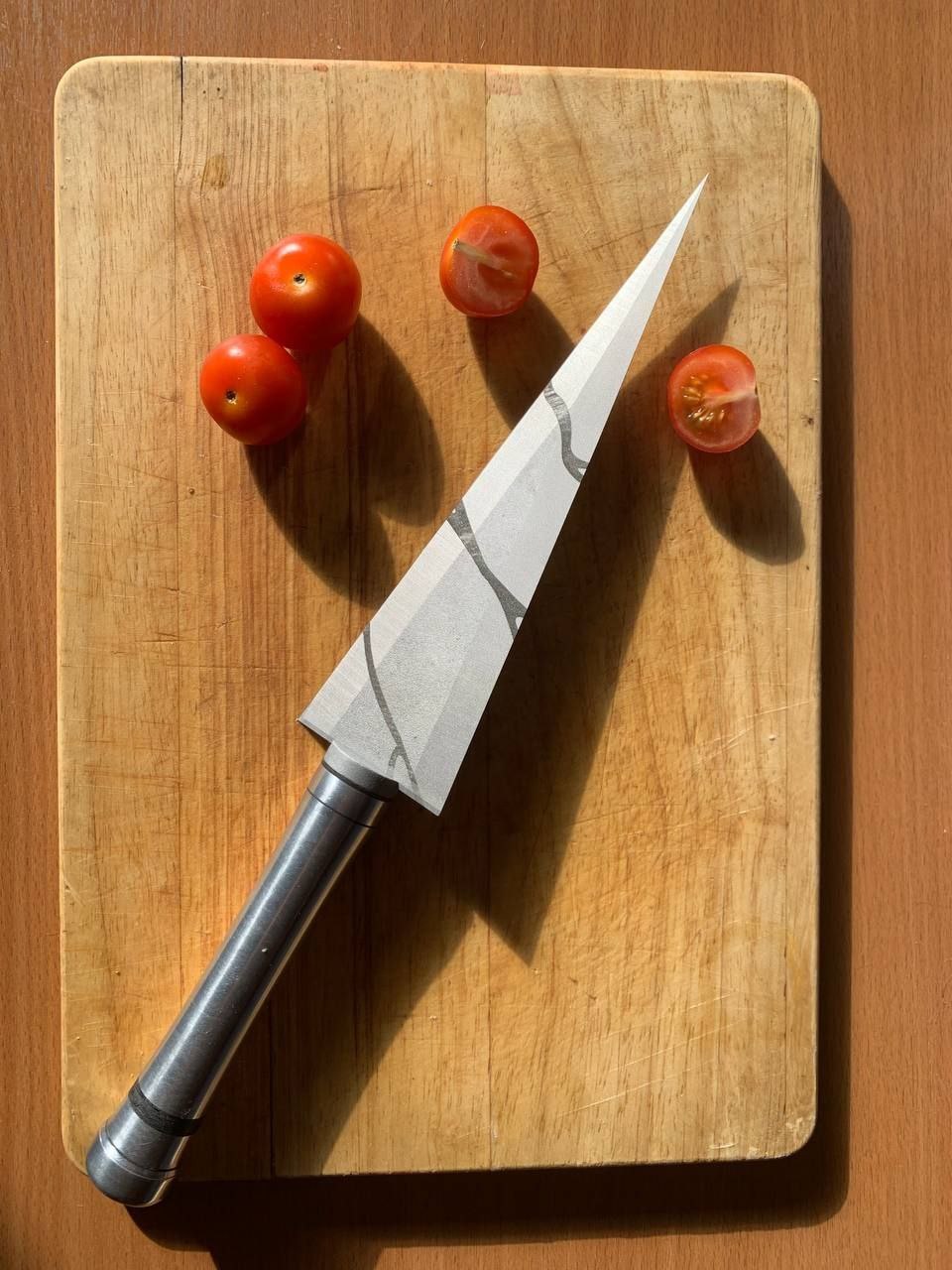 Сразу отвечу на вопрос: нож КУХОННЫЙ. Заточка только с одной стороны (чтобы не ХО).