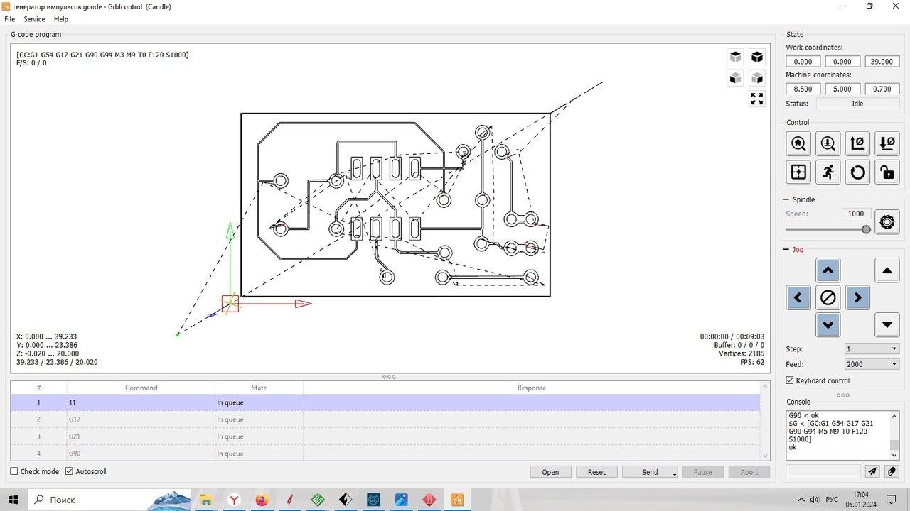 Рисуем дорожки печатной платы генератора прямоугольных импульсов, тонким маркером. Напечатал прямоугольный адаптер для маркера, что бы зажать его по центру, на месте установки шпинделя/лазерной головки. Накидываем плату в DipTrace и преобразуем в grbl. Включаем станок, слушаем, как поют драйвера CNC3018 и смотрим, как рисуются дорожки на плате.