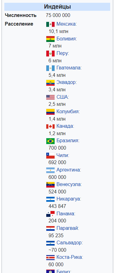 Ну да, ну да. Так истребляли, что индейцев в Латинской Америке аж 75 миллионов и это без учёта метисов.
