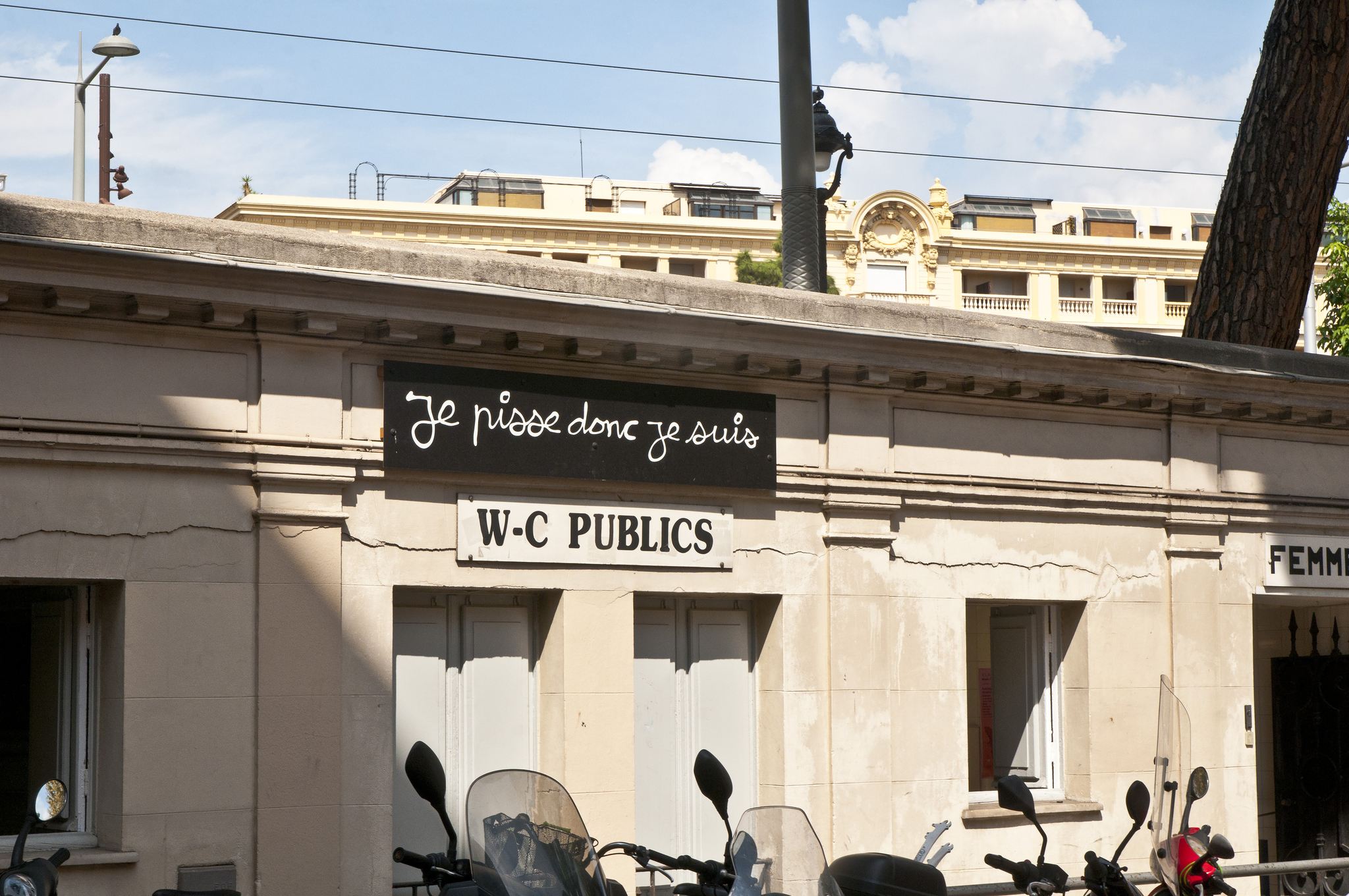 Надпись над туалетом в Ницце -- "Я писаю, и значит я существую".