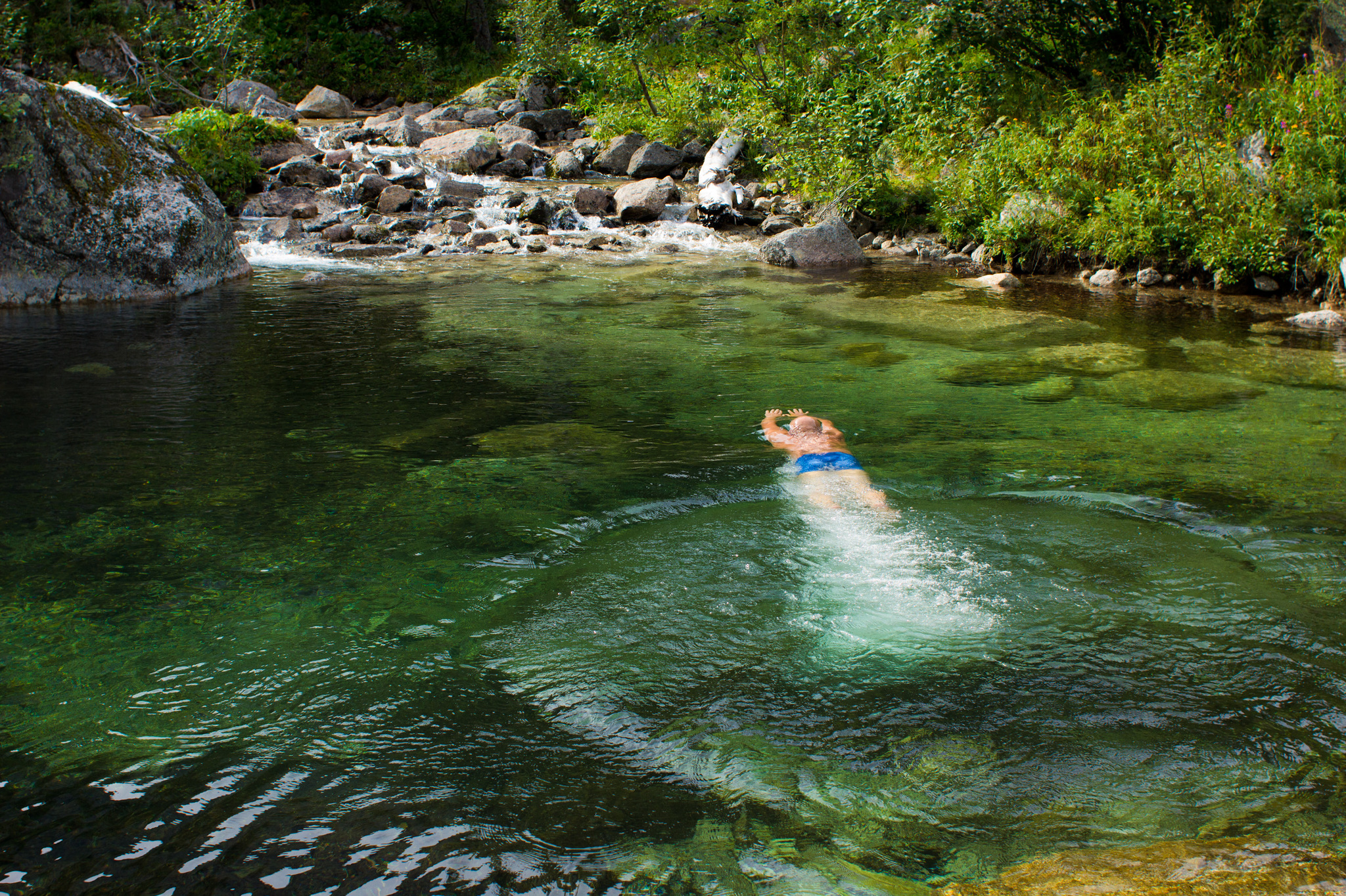Находиться в этой прекрасной долине невероятно комфортно. Воздух, вода и туманы....А как красиво корнями в камень упираются вековые кедры! И запах.....Отправляемся на водопад Тайгишонок. Отдыхать и купаться в ледяной воде талых снежных вод