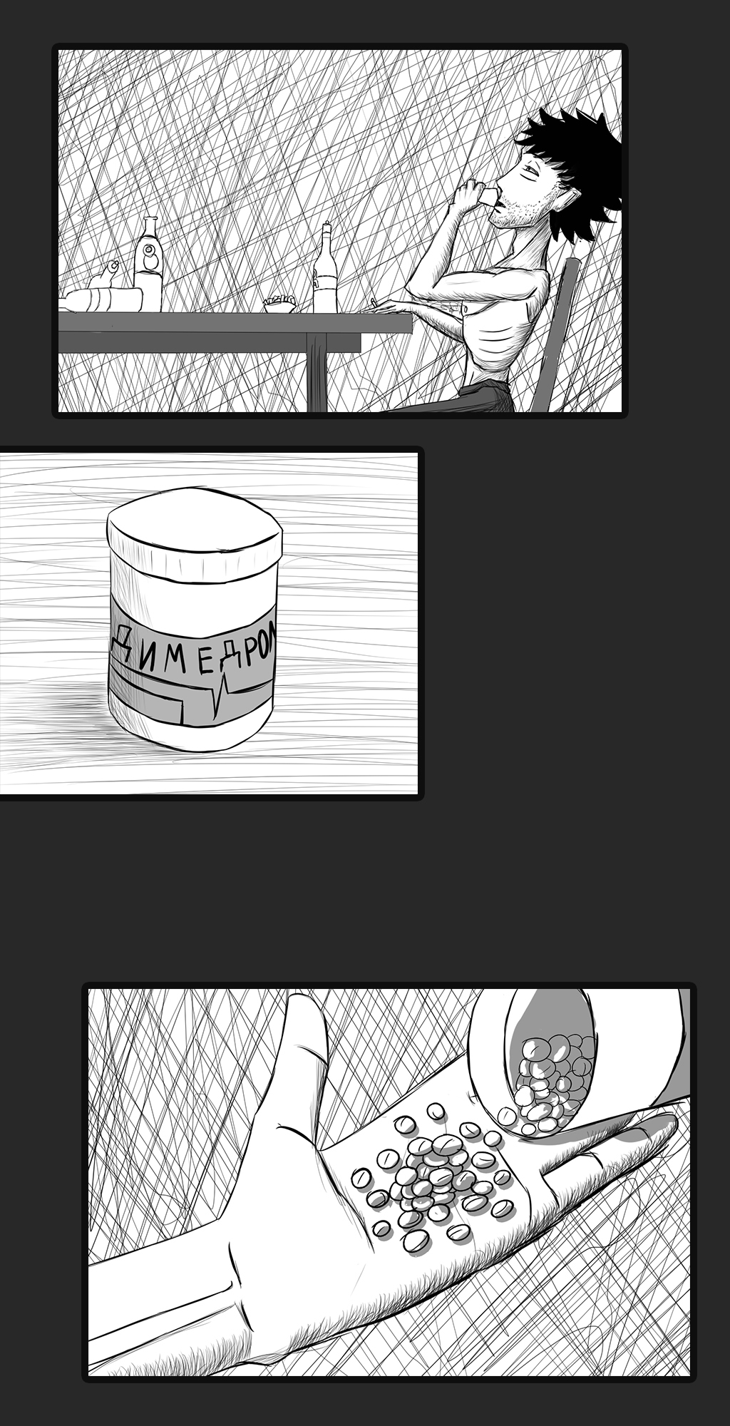 И так хуево мне тогда стало, что начал я бухать. Даже впервые попробовал че по интересней. Но один хер все становилось только хуже и хуже. В итоге стало мне настолько хуево, что на контрасте понял: если бы все проебаное за год время, потратил бы на обучения рисованию и изучению сценария - я уже был бы на нормальном уровне.