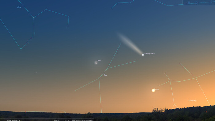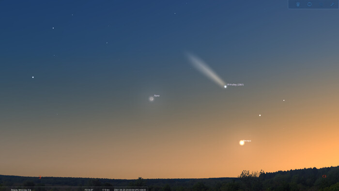 Летом 2061 года комета Галлея имеет шанс взять реванш за неэффектное предыдущее появление. Она пройдет от Земли всего в 1/3 астрономической единицы, и может достигнуть нулевой звездной величины. В 20-х числах июня 2061 года сложатся благоприятные условия её видимости в средних северных широтах на вечернем небе рядом с тонкой растущей Луной и Венерой. Постарайтесь не забыть об этом.