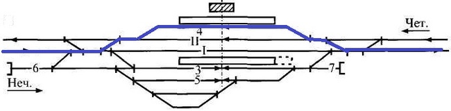 - снижение скоростей движения. Нечётный поезд, следуя с отклонением по стрелочным переводам, вынужден снижать свою скорость. Если на I-й путь он может прибыть даже со скоростью 120 км/ч или выше, то по стрелкам на 4-й путь ему придётся тащиться со скоростью в 40 км/ч (а то и 25 км/ч). Это сразу плюс несколько минут. Если таких промежуточных станций не одна, не две, и даже не пять, а больше - пассажирам внутри поезда нужно будет проводить в пути лишние десятки минут только потому, что поезд пропускался по боковым путям.