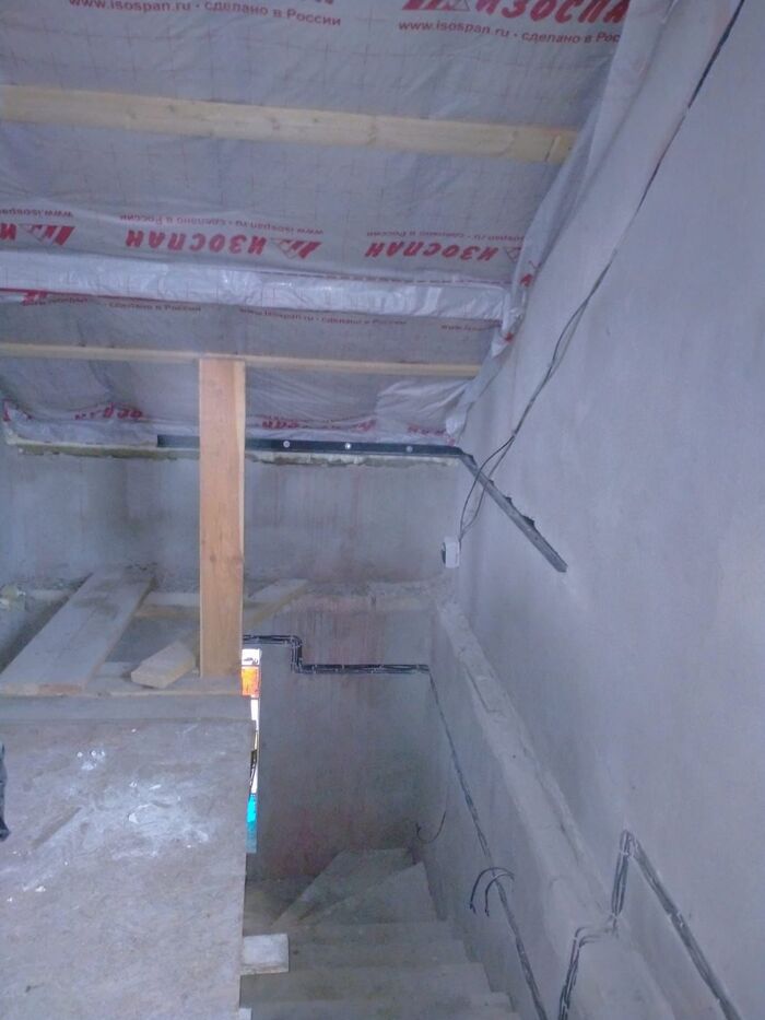 Дом частично оштукатурен цементной штукатуркой. Отсутствует армопояс между первым и вторым этажом. Отсутствует армопояс (самый важный косяк) под мауэрлатом. Перемычки оконных проемов выполнены из металлического уголка.