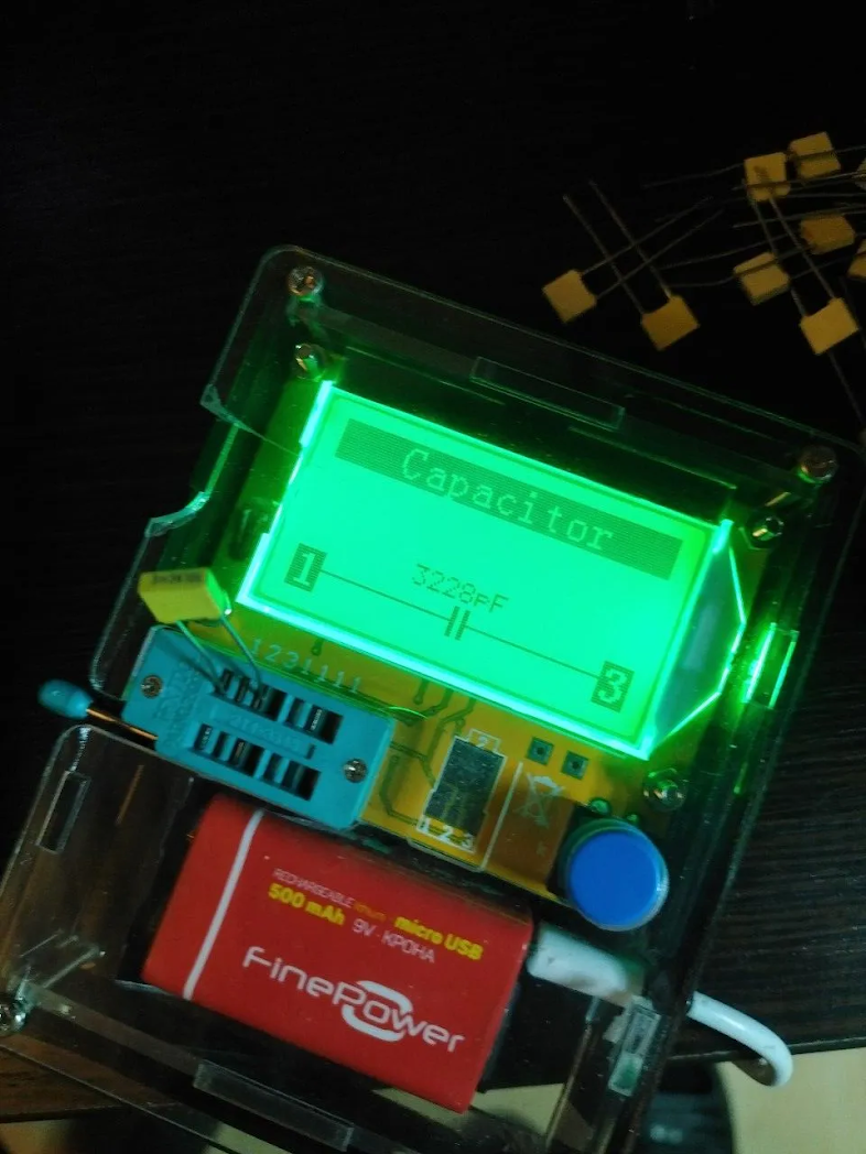 Заказываем набор плёночных конденсаторов на 2.2, 3.3, 4.7, 6.8 нФ, каждый по два рубля, но продавец отказался продавать менее, чем на сотню, так что берём по десять каждых. Ставим первым для проверки конденсатор на 3.3 нФ.