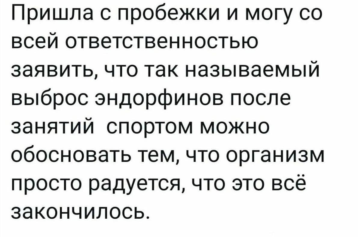 3454 xMakedonecx Юмор Немного о спорте 1 год назад Источник https://t.me/vnepolit/7775 Юмор Картинка с текстом Картинки Telegram (ссылка) Бег Эндорфины Спорт Повтор 108 17 7 1 Ещё 0